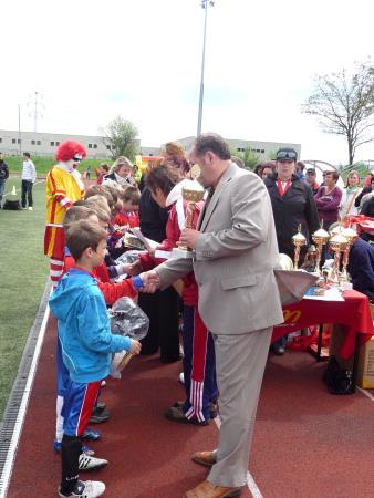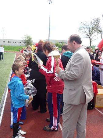 Radní Jiří Struček při předávání poháru týmu ze ZŠ Tachov, Hornická.