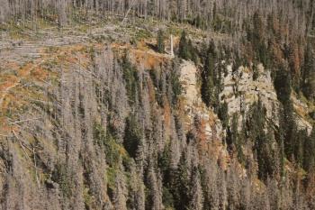 Fotografie Milana Váchala a Zdeňka Troupa dokumentují změnu krajinného rázu Šumavy se všemi jejími důsledky. Krásná a zelená Šumava se vlivem kůrovce mění v uschlé porosty a vykácené holiny. Lesní ekosystémy v Národním parku Šumava jsou devastovány a zcela ponechány napospas kůrovci. Výsledkem jsou stále se rozšiřující tisíce hektarů suchých lesů včetně zbytků původních pralesů, likvidace genofondu původního šumavského smrku a následně zbytečně vznikající stovky hektarů holin. Nyní je kůrovcem bezprostředně ohrožen i prales v lokalitě významné pro český národ – u Pramenů Vltavy, kde rostou až čtyři sta let staré stromy. Dílo zkázy samozřejmě rozšířil orkán Kyrill v roce 2007, ale akcelerovala ho špatná rozhodnutí o ponechání napadeného dřeva kůrovcem bez asanace. Spory se vedou a kůrovec se šíří. Vážnost situace v šumavských lesích přiměla v červnu 2009 hejtmany Jihočeského a Plzeňského kraje k ustavení pracovní skupiny odborníků, která by posoudila stav kůrovcového nebezpečí a navrhla příslušná opatření ke zmenšení škod na lesních ekosystémech. Návštěvníci se budou moci také připojit k petici Zachraňme Šumavu, která apeluje na českou vládu a parlament ve věci ochrany přírodních hodnot lesů v Národním parku Šumava.