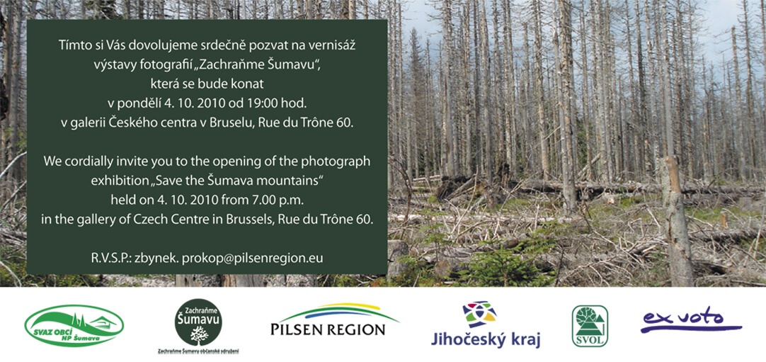 Slavnostní vernisáží byla zahájena výstava Zachraňme Šumavu v galerii Českého centra v Bruselu. Hlavními pořadateli výstavy jsou Plzeňský kraj, Jihočeský kraj a občanské sdružení Zachraňme Šumavu ve spolupráci s Českým centrem v Bruselu. Výstavu zahájili hejtman Jihočeského kraje Jiří Zimola společně s radním Plzeňského kraje pro životní prostředí Petrem Smutným.