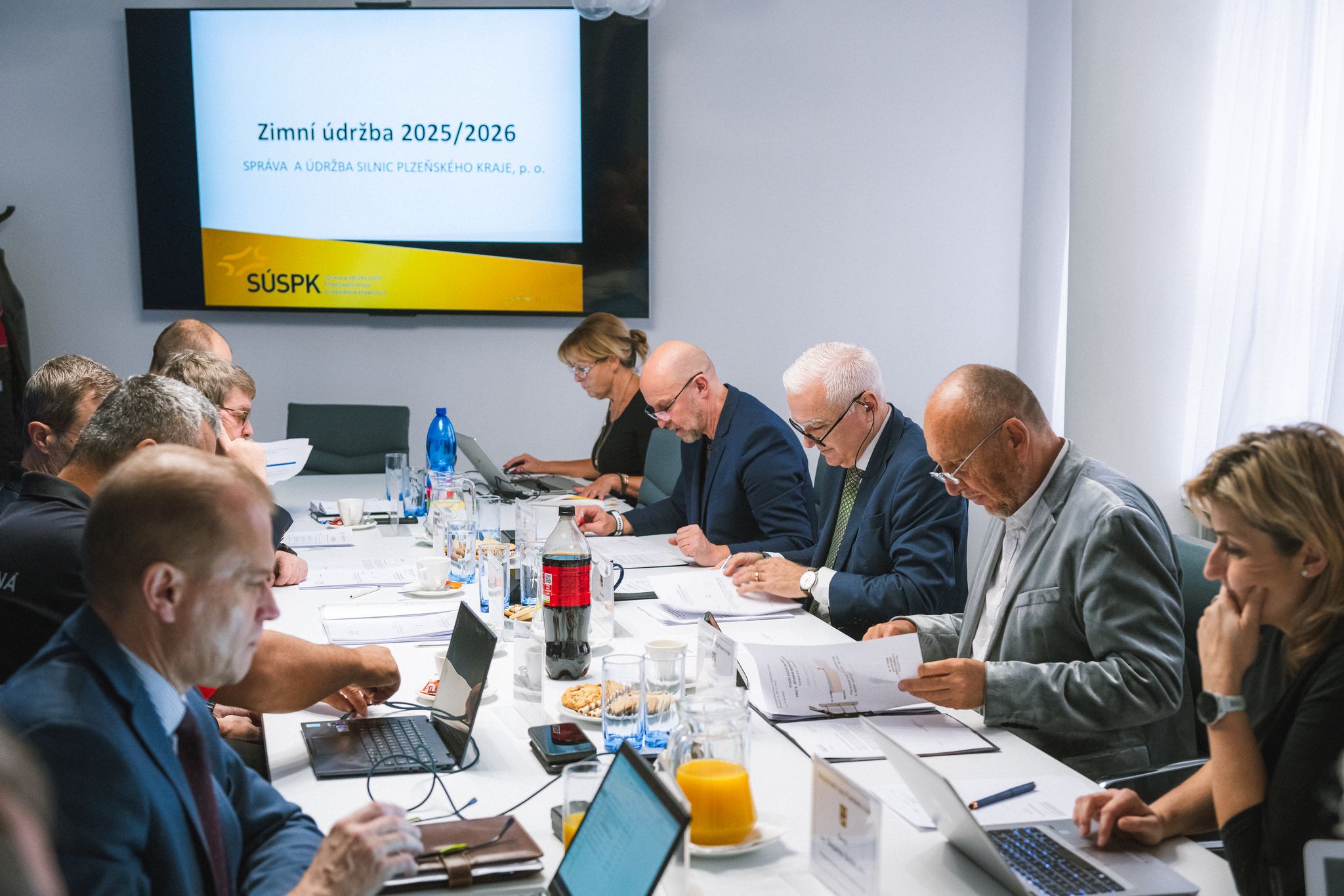 Jiří Velíšek, ředitel SÚS PK, seznámil členy rady s připraveností všech 22 středisek na zajištění sjízdnosti silnic v rámci celého kraje a jednotlivé složky IZS dokladovaly svoji připravenost na řešení případných mimořádných událostí a řešení krizových situací, jako je např. možný výskyt ptačí chřipky apod. „Máme na starosti celkem 103 okruhů zimní údržby a zajišťujeme celkem 4 901 kilometrů silnic. Na každém okruhu slouží nepřetržitě 3 řidiči. Zároveň máme na SÚS nasmlouváno 70 radličkářů na prohrnování sněhu a zimní údržbu řídí celkem 6 dispečerských pracovišť rozložených po celém kraji. Jsou v Klatovech, Domažlicích, Rokycanech, Kralovicích, Plané a v Přešticích,“ upřesnil ředitel SÚSPK Jiří Velíšek. 84 okruhů je udržováno chemickým posypem (3 858 km) a 19 okruhů inertním posypem (862 km), k těmto okruhům patří i NP Šumava, Český les a vodní zdroje, kde nelze použít chemický posyp. SÚSP disponuje 116 kusů sypačů a 15 sněhovými frézami. „Pro kalamitní situace je navíc smluvně zabezpečeno přibližně 66 externích dodavatelů, kteří jsou vybaveni traktory s pluhy. Ti na pokyn dispečera vyjíždějí jako kalamitní výpomoc,“ zdůraznil ředitel J. Velíšek. Pravidelným bodem jednání bezpečnostní rady byla také informace o situaci v oblasti veřejného pořádku a bezpečnosti v kraji.