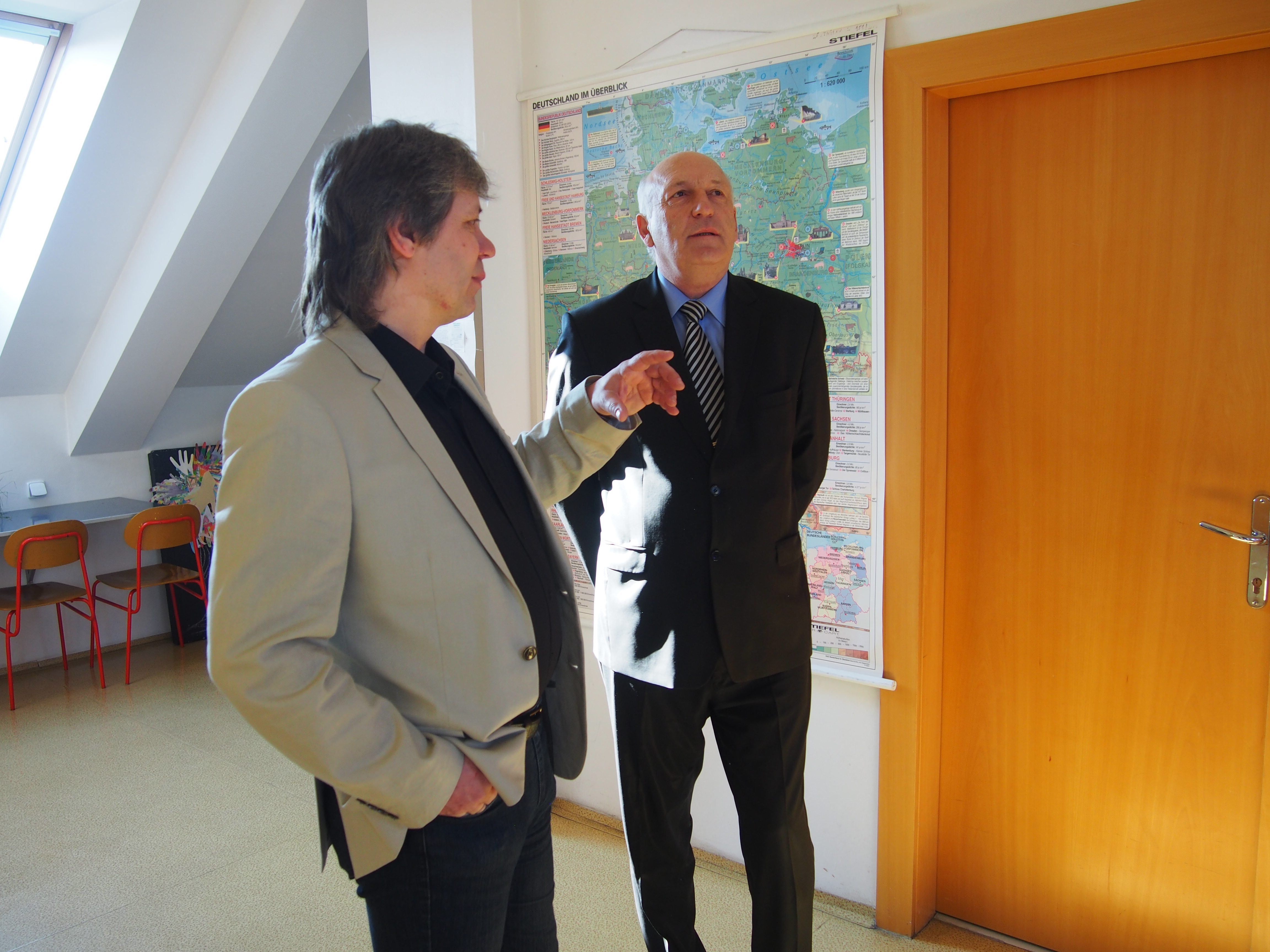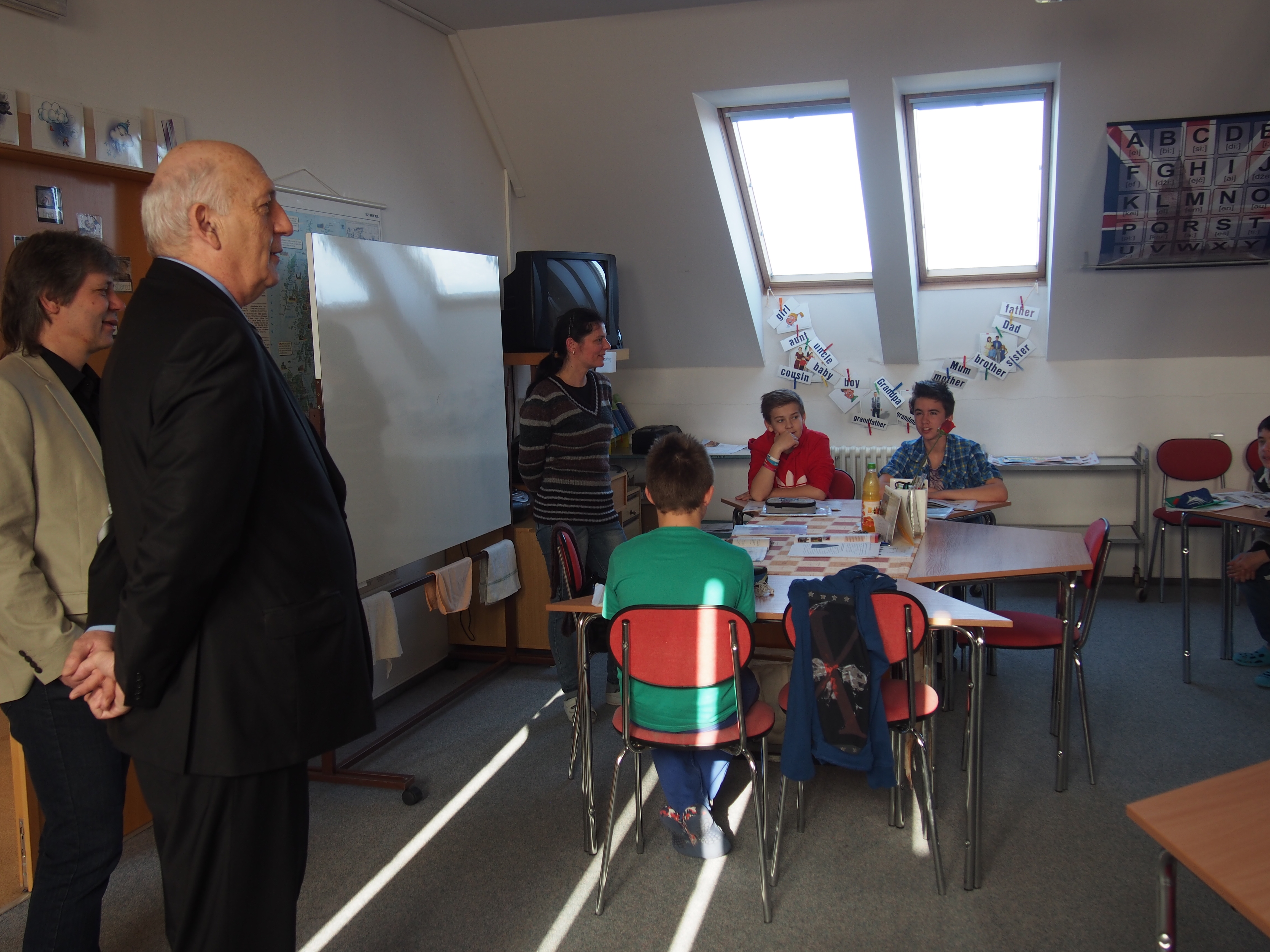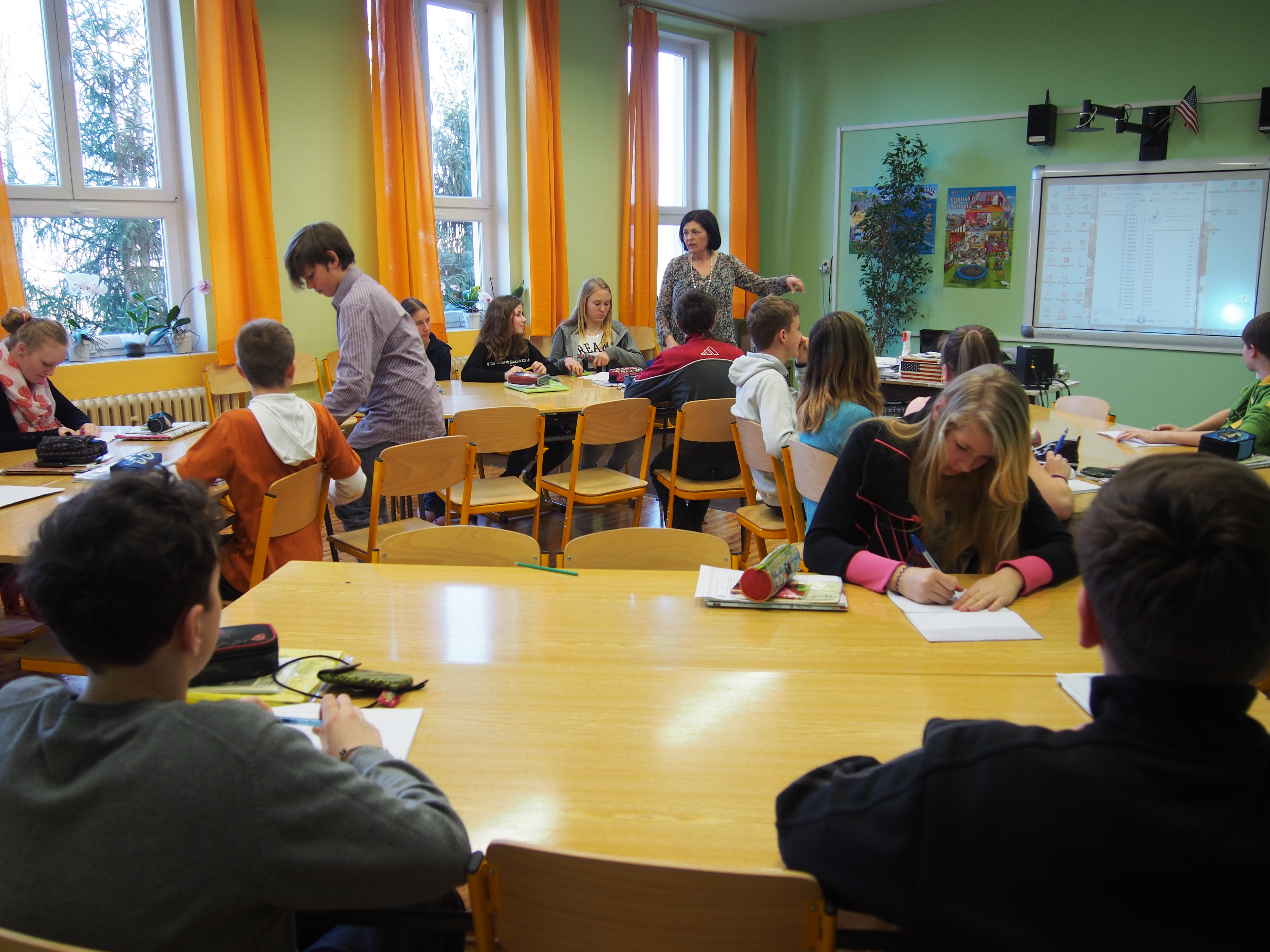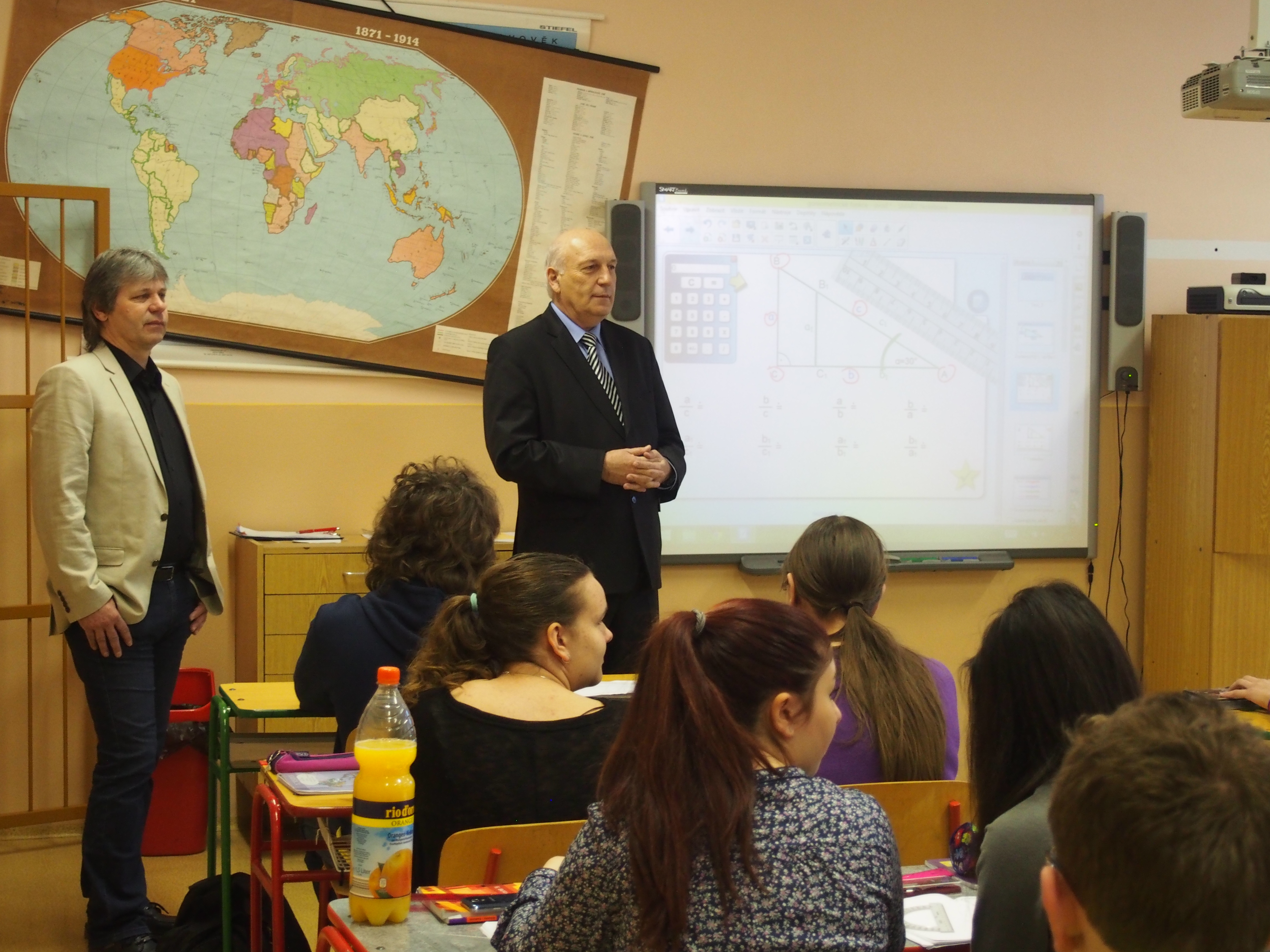 Hejtmana provedla po budově základní školy ředitelka Jitka Suchá. Nejprve nahlédli do učebny, kde probíhala výuka angličtiny. Poté přes krátkou zastávku na hodině německého jazyka zavedla ředitelka návštěvu do deváté třídy, kde právě probíhala výuka matematiky.