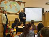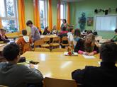 Hejtmana zajímalo, na jaké školy se žáci hlásí, připomněl jim význam technických oborů a zmínil také lepší uplatnění na trhu práce po skončení školy. „Náš kraj sousedí s Bavorskem a právě na Domažlicku je znalost němčiny pro budoucí zaměstnání důležitá" zdůraznil Václav Šlajs. Žáci ho pak překvapili tím, že všichni žáci ve třídě se učí jak angličtinu, tak němčinu. Když byla možnost pokládat otázky hejtmanovi, tak padl dotaz na to, zda chtěl být vždy hejtmanem nebo jestli se v mládí věnoval sportu.