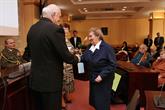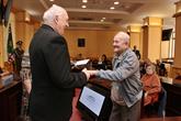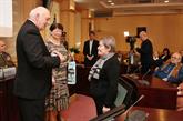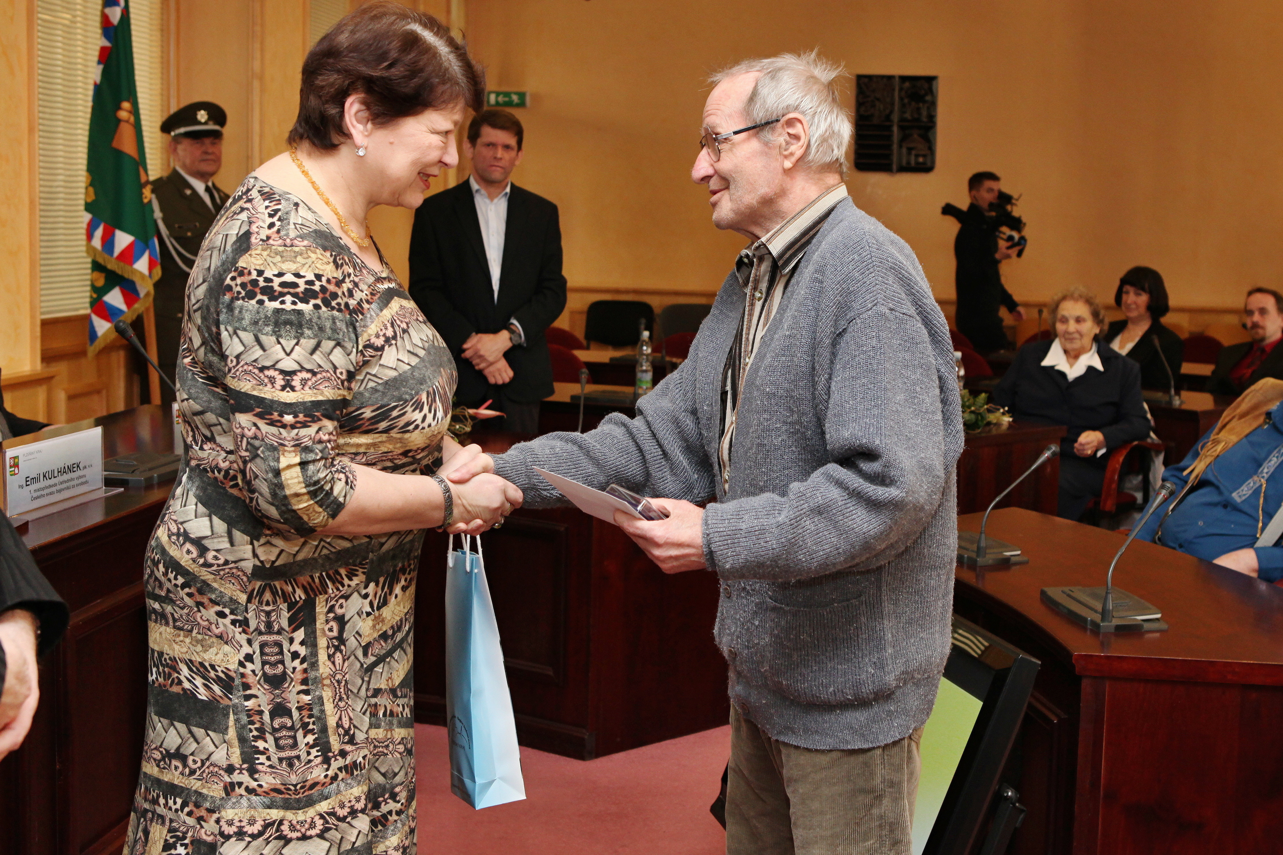 Všech 12 oceněných bojovníků za svobodu, kteří byli vězněni za svůj původ nebo přesvědčení v koncentračních táborech, převzalo z rukou hejtmana Václava Šlajse pamětní medaili a finanční dar ve výši 10 000 korun na zdravotní péči, potřeby a léky.