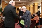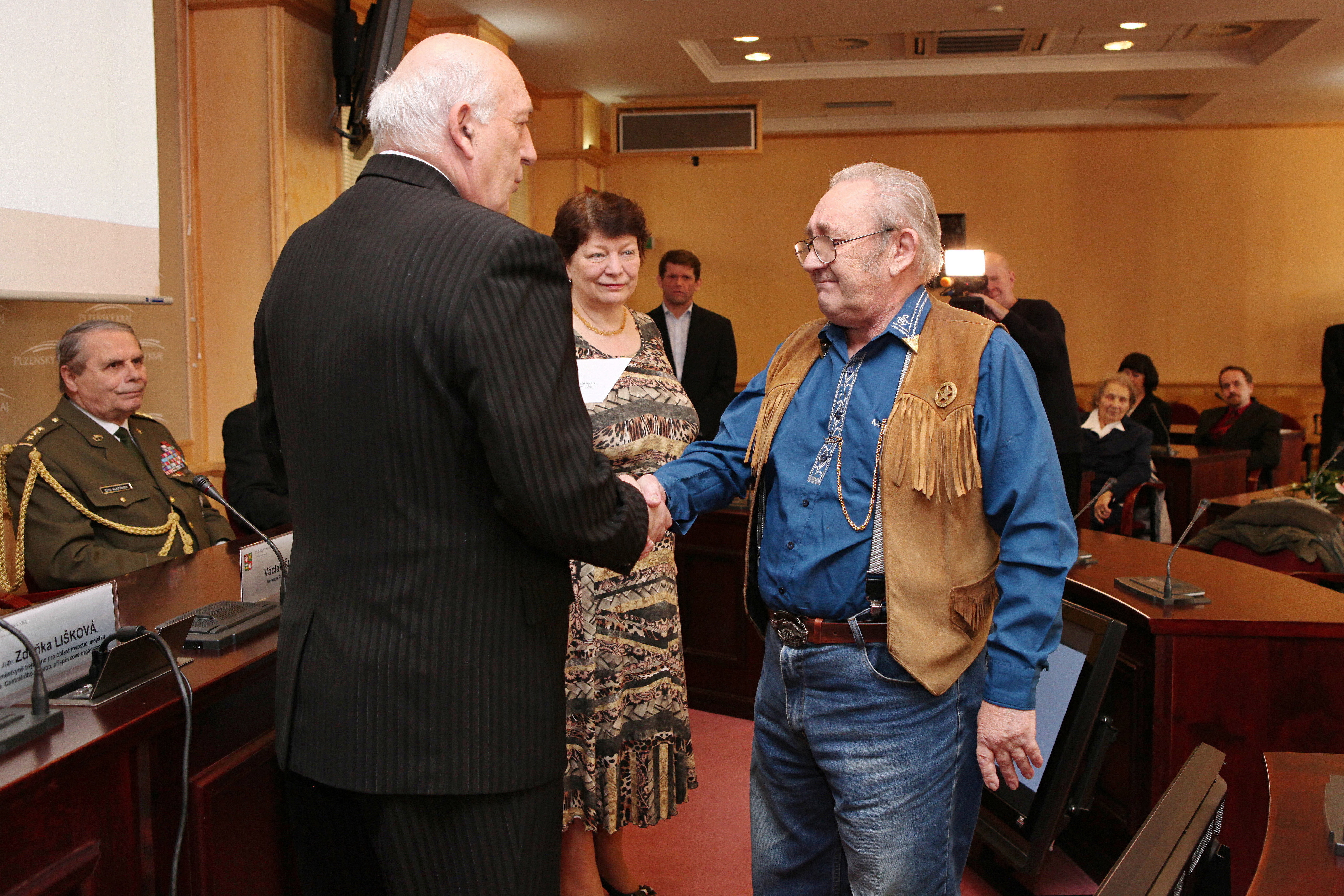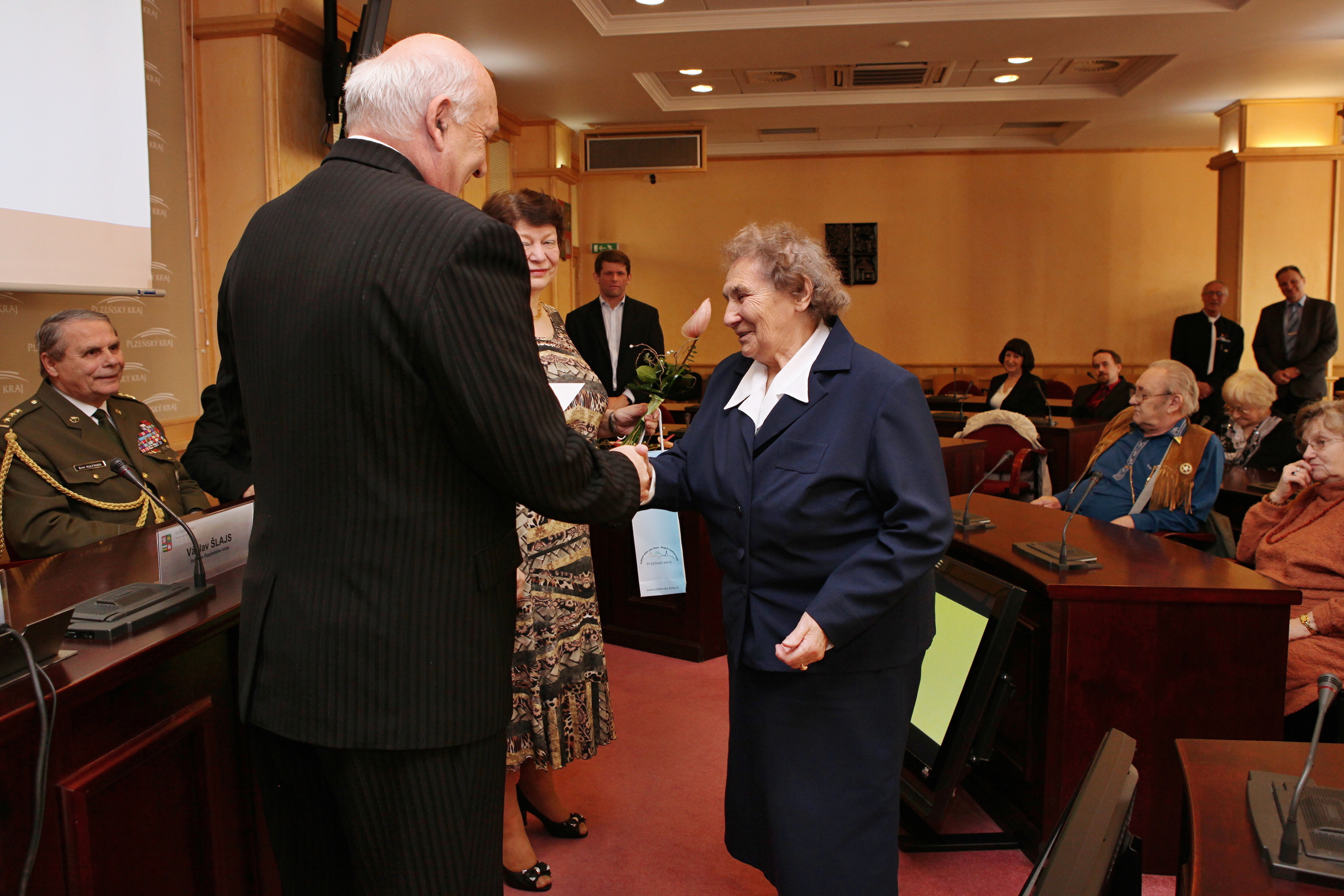 Hejtman Václav Šlajs, jeho náměstkyně Zdeňka Lišková a radní Jaroslav Šobr se v pátek 18. března 2016 setkali s bojovníky za svobodu, politickými vězni, kterým předáním pamětní medaile a finančního daru vyjádřili uznání za jejich útrapy v době nacistického režimu.