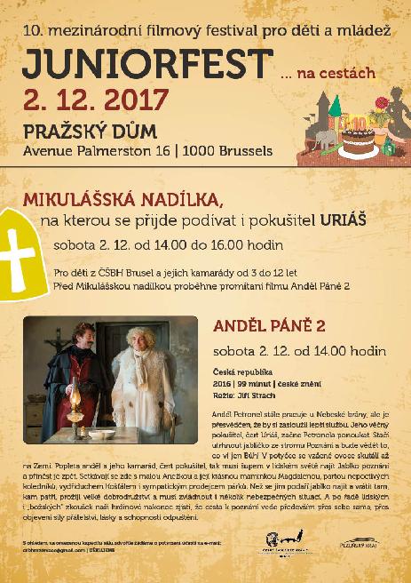 V sobotu, 2.12.2017, od 14:00 hod. v Pražském domě, Avenue Palmerston 16, Brusel, promítneme film "Anděl Páně 2" (délka 99 min.)
