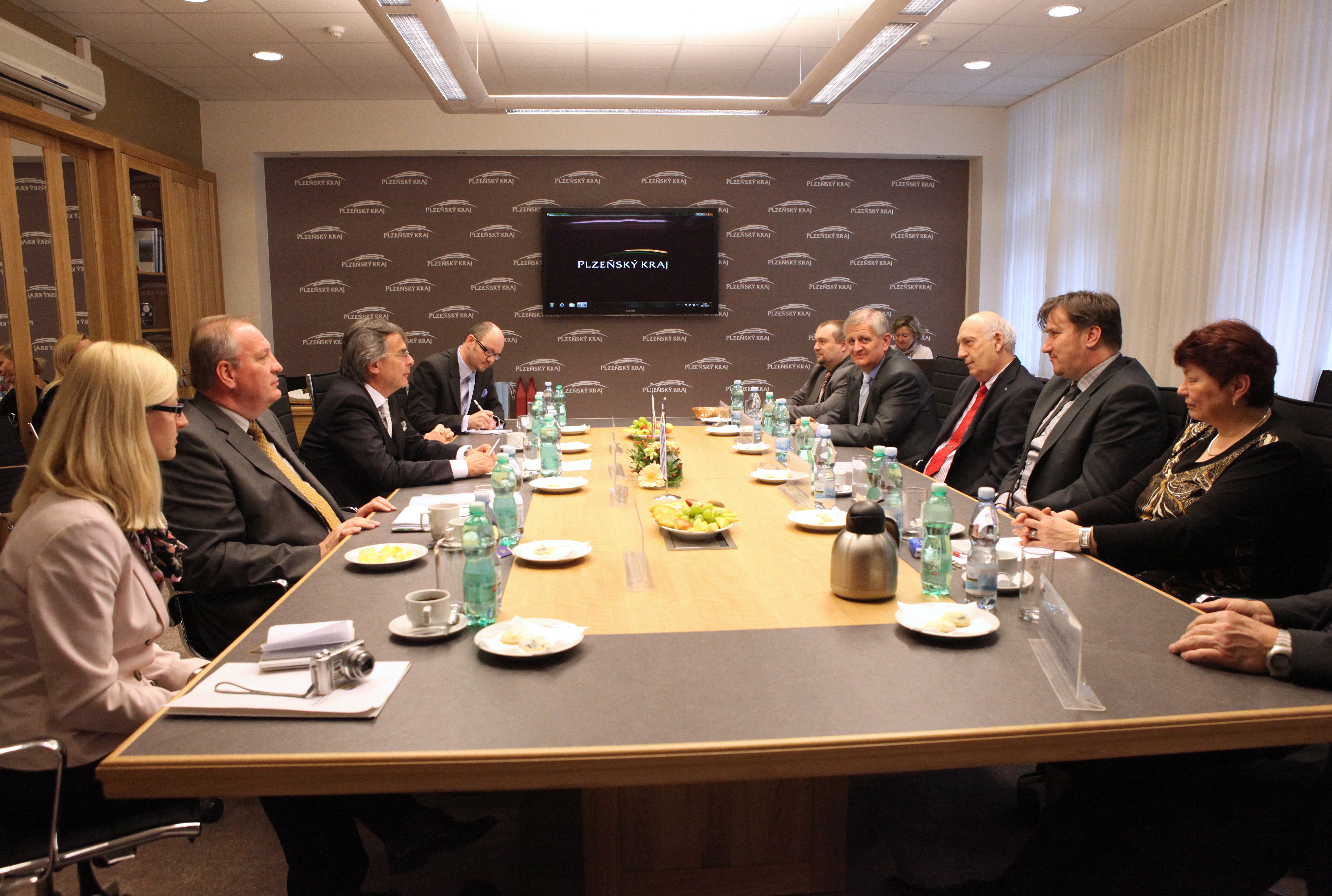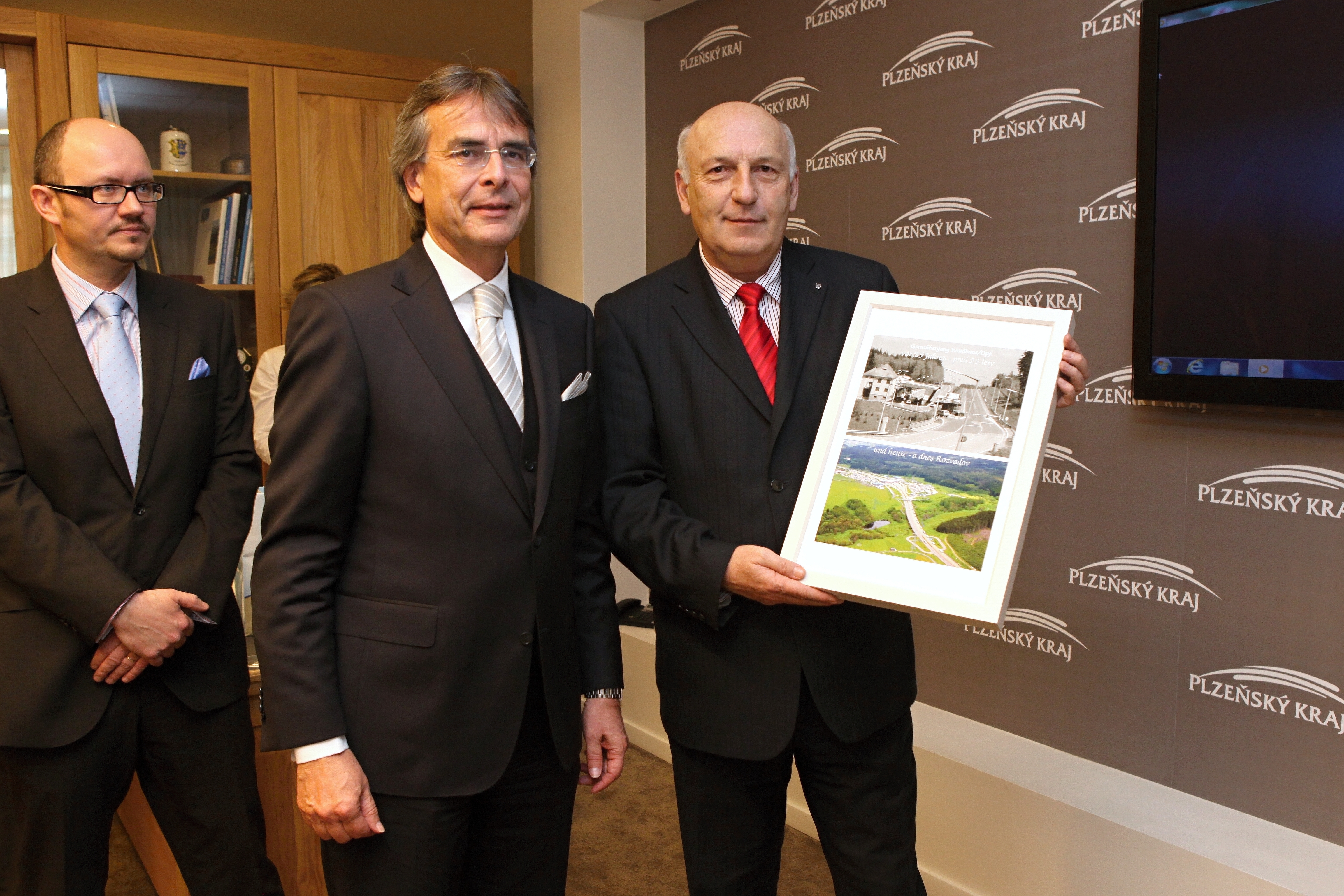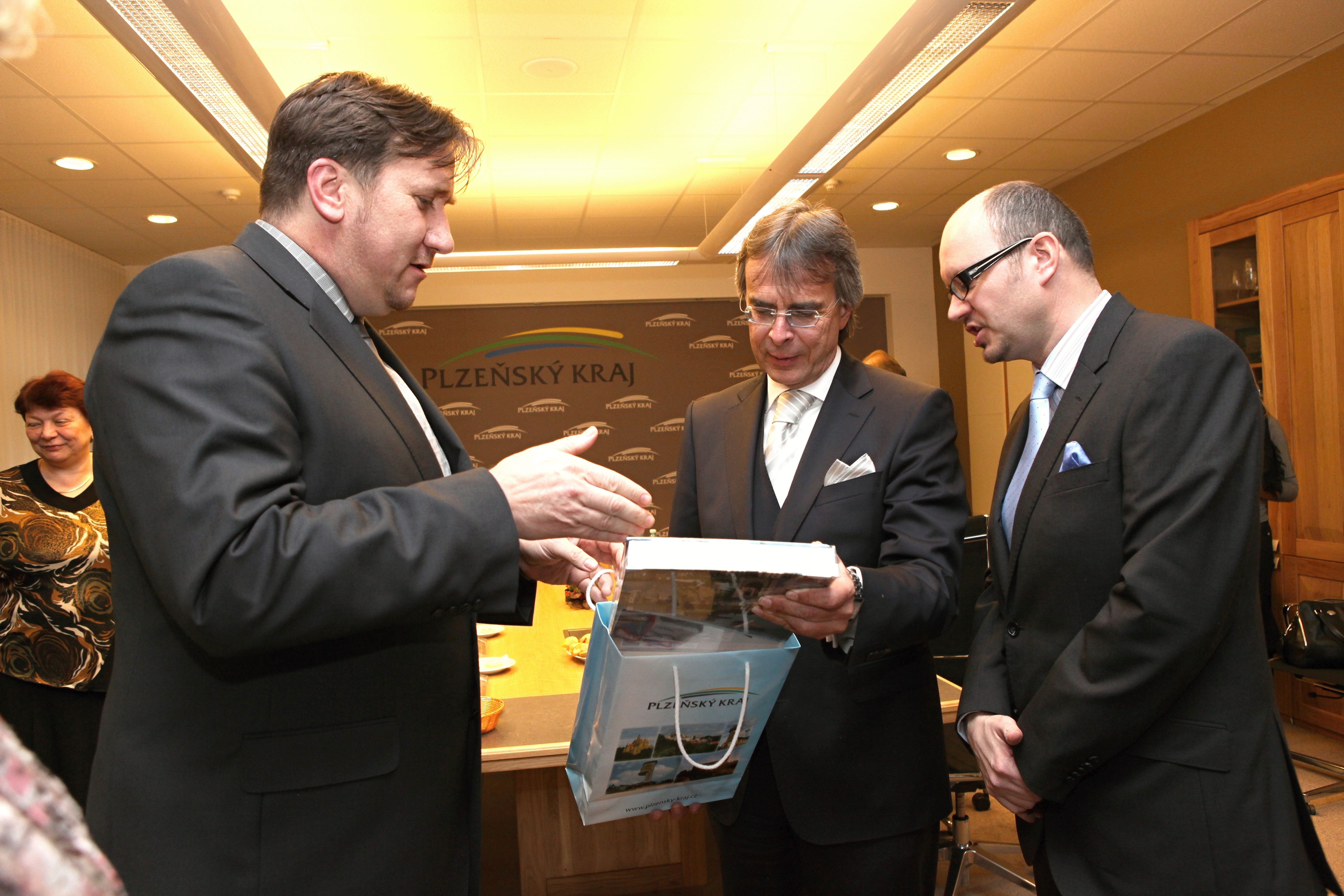 Hejtman Václav Šlajs přivítal nového vládního prezidenta a poblahopřál mu ke jmenování do funkce. V úvodu hejtman krátce představil Plzeňský kraj a zmínil jeho dobré postavení mezi ostatními regiony České republiky. „Úspěchy Plzeňského kraje jsou zásluhou práce občanů kraje, ale velký podíl na tom má také spolupráce s Bavorskem a regionem Horní Falc," řekl při setkání Václav Šlajs s tím, že bychom rádi navázali na vynikající spolupráci s bývalou prezidentkou Horní Falce Brigittou Brunner.