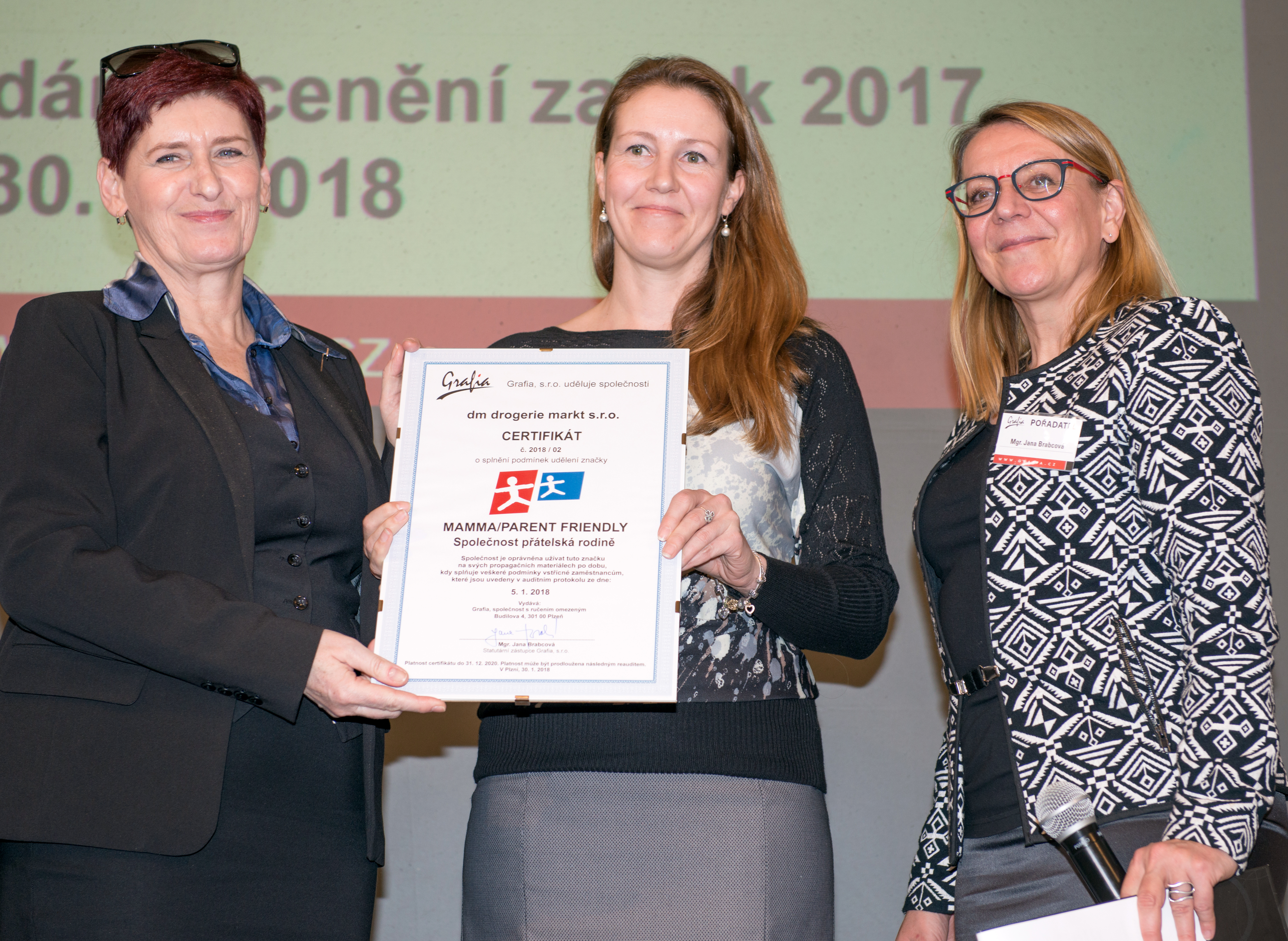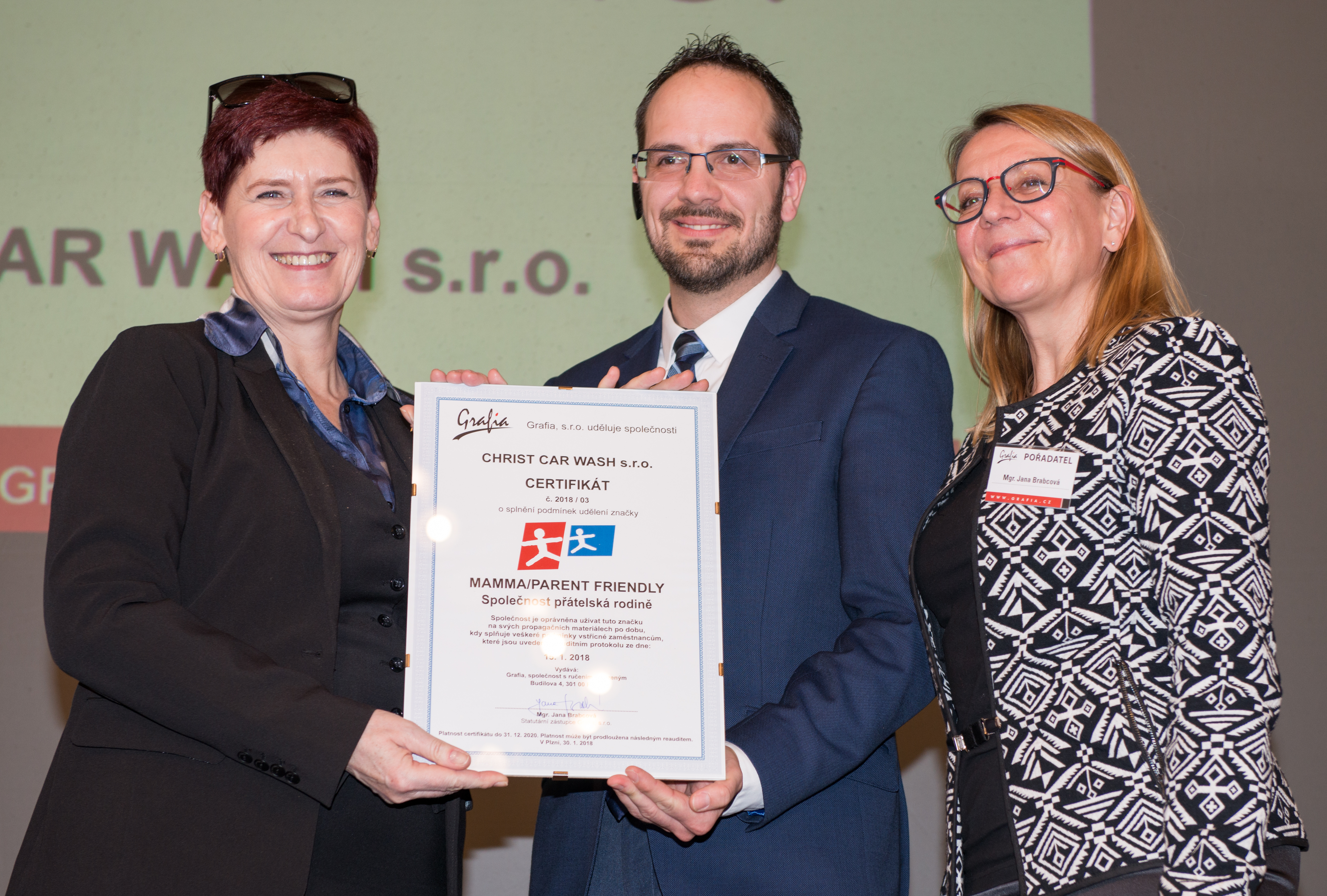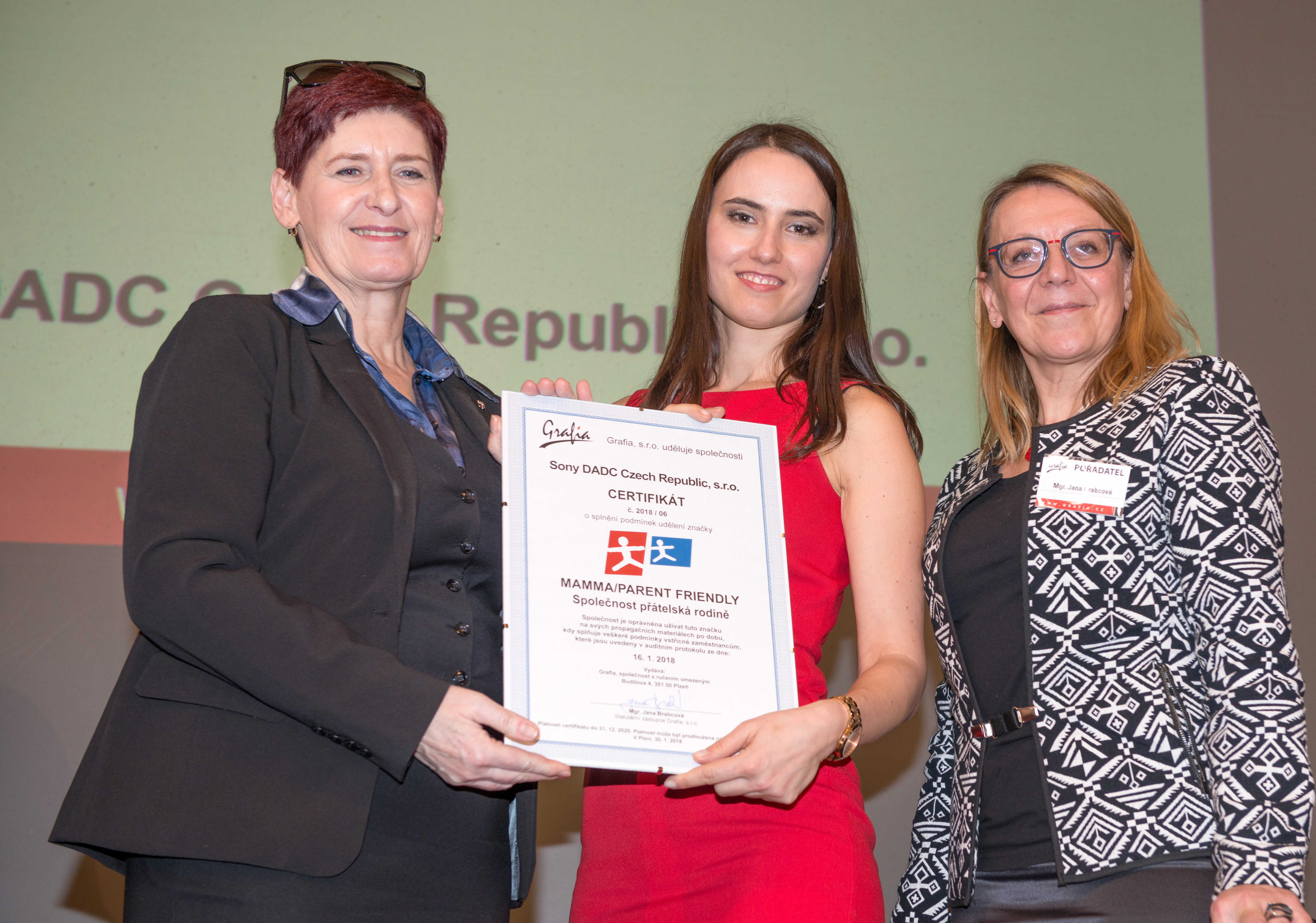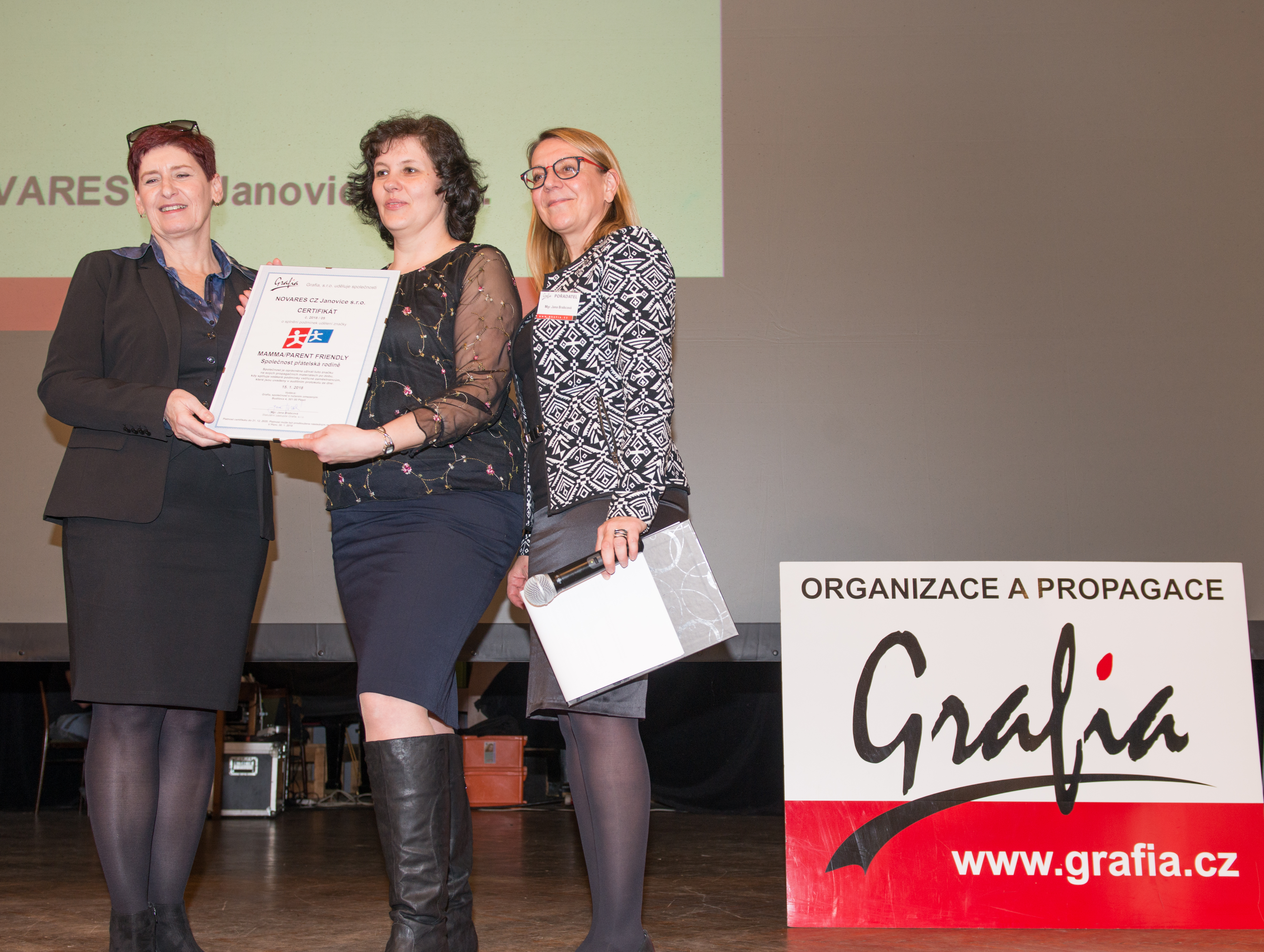 Ceny zástupcům oceněných společností předávala náměstkyně hejtmana Marcela Krejsová. Ocenění Mamma/Parent Friendly uděluje společnost Grafia, s.r.o. na základě přihlášení podniků a po zhodnocení odborné poroty již od roku 2009.