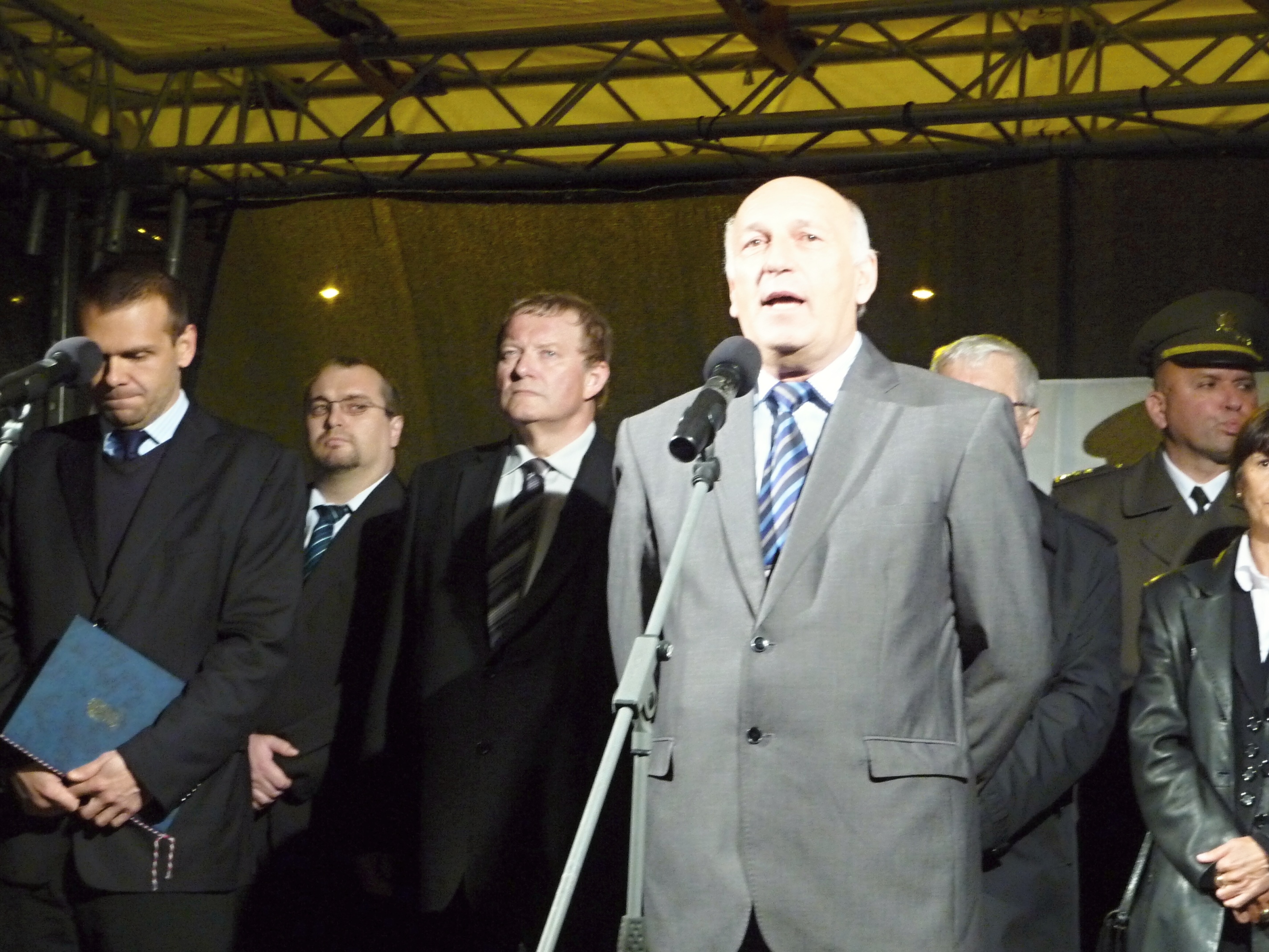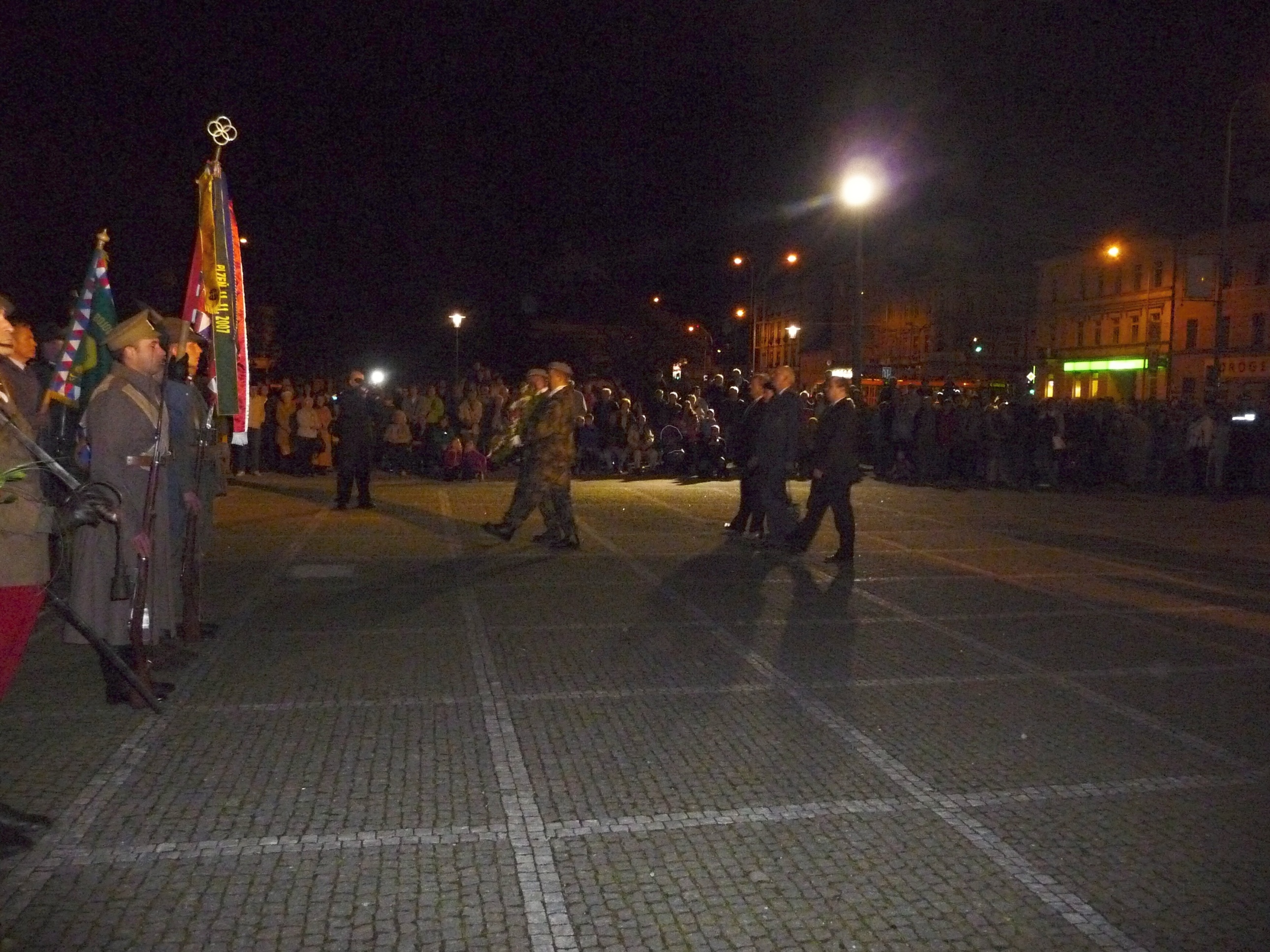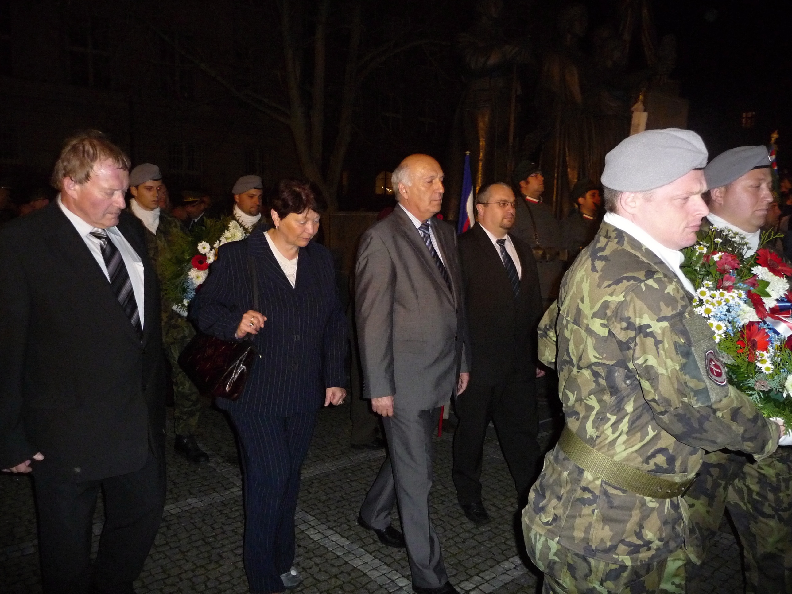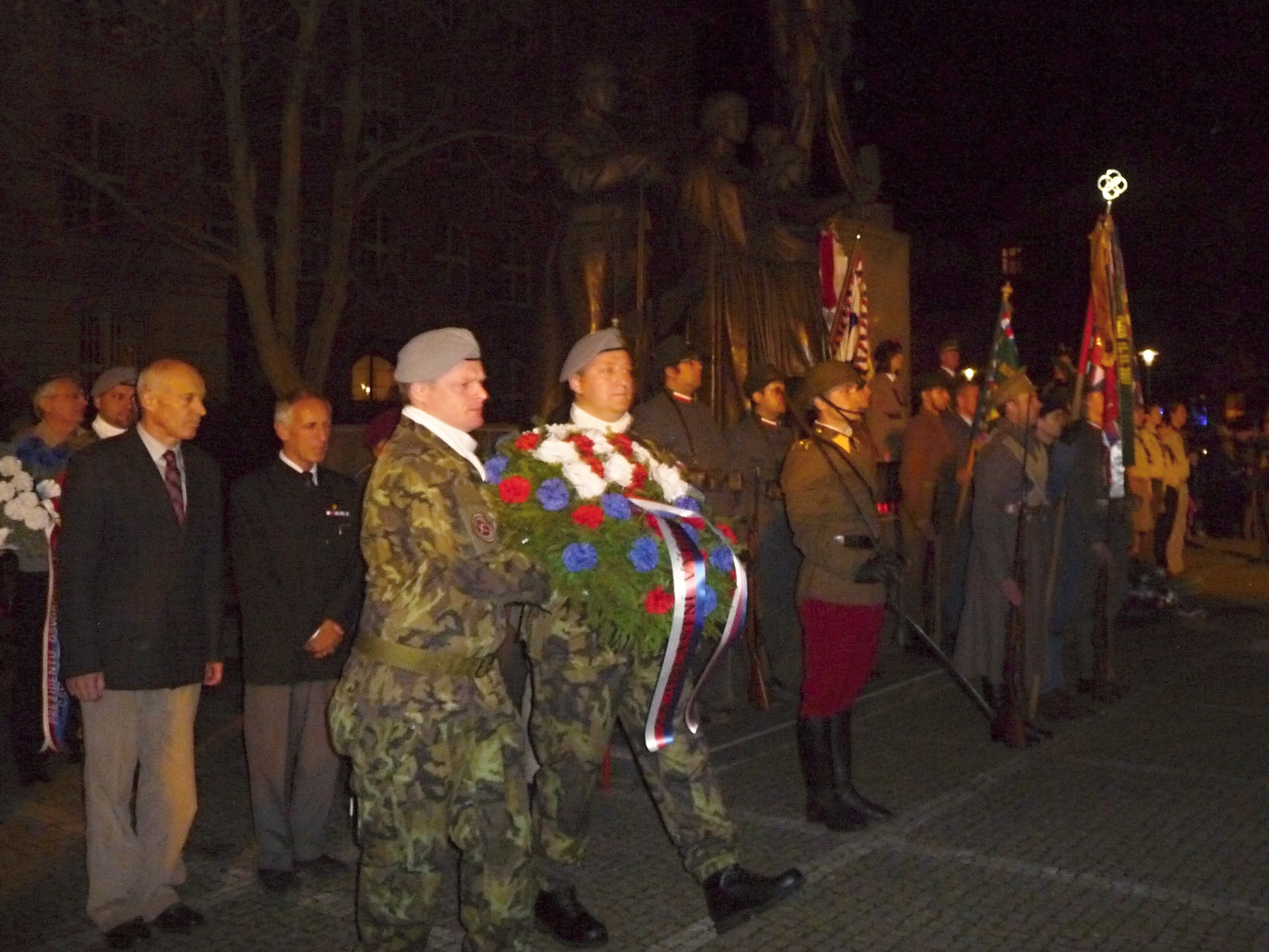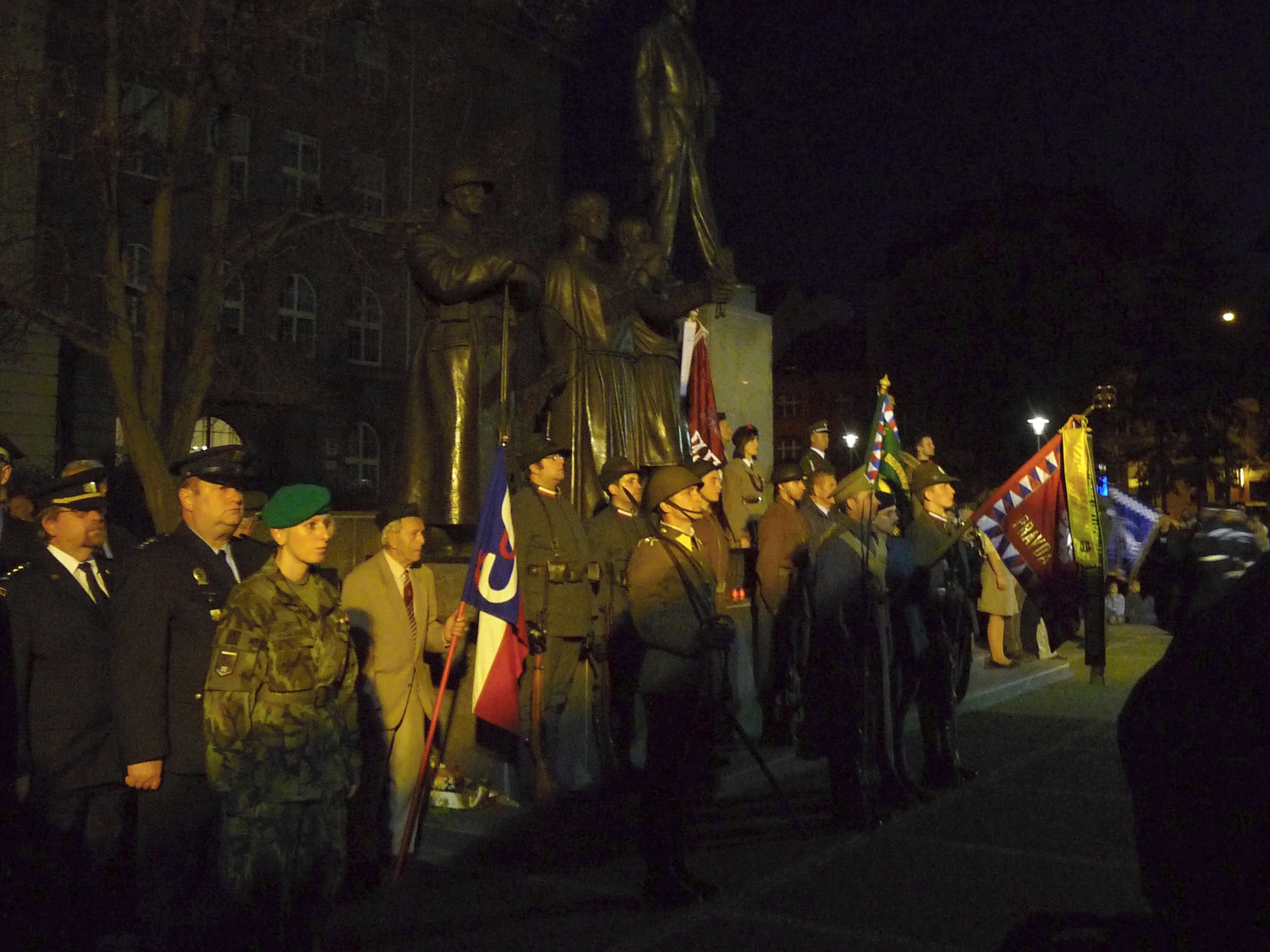 Slavnostní shromáždění při příležitosti 95. výročí Československa v Plzni 29. října 2013 17:45, aktualizováno 16:45, Mgr. René Zeithaml Slavnostní shromáždění při příležitosti 95. výročí Československa proběhlo u Památníku národního osvobození na náměstí T. G. Masaryka v Plzni. Akce, která proběhla v 28. října 2013 ve večerních hodinách, se za Plzeňský kraj zúčastnili náměstci hejtmana Václav Šlajs a Zdeňka Lišková a členové Rady Plzeňského kraje Zdeněk Honz a Václav Štekl. U příležitosti státního svátku byly uděleny Pamětní medaile Krajského vojenského velitelství Plzeň a povýšení vojáků roty aktivních záloh KVV Plzeň. Medaile předal náměstek hejtmana Plzeňského kraje Václav Šlajs spolu s ředitelem Krajského vojenského velitelství Plzeň plukovníkem generálního štábu Romanem Kučerou. Poté byly položeny věnce a květiny k památníku T. G. Masaryka. Akce proběhla v rámci dvoudenních oslav vzniku republiky. Fotogalerie: