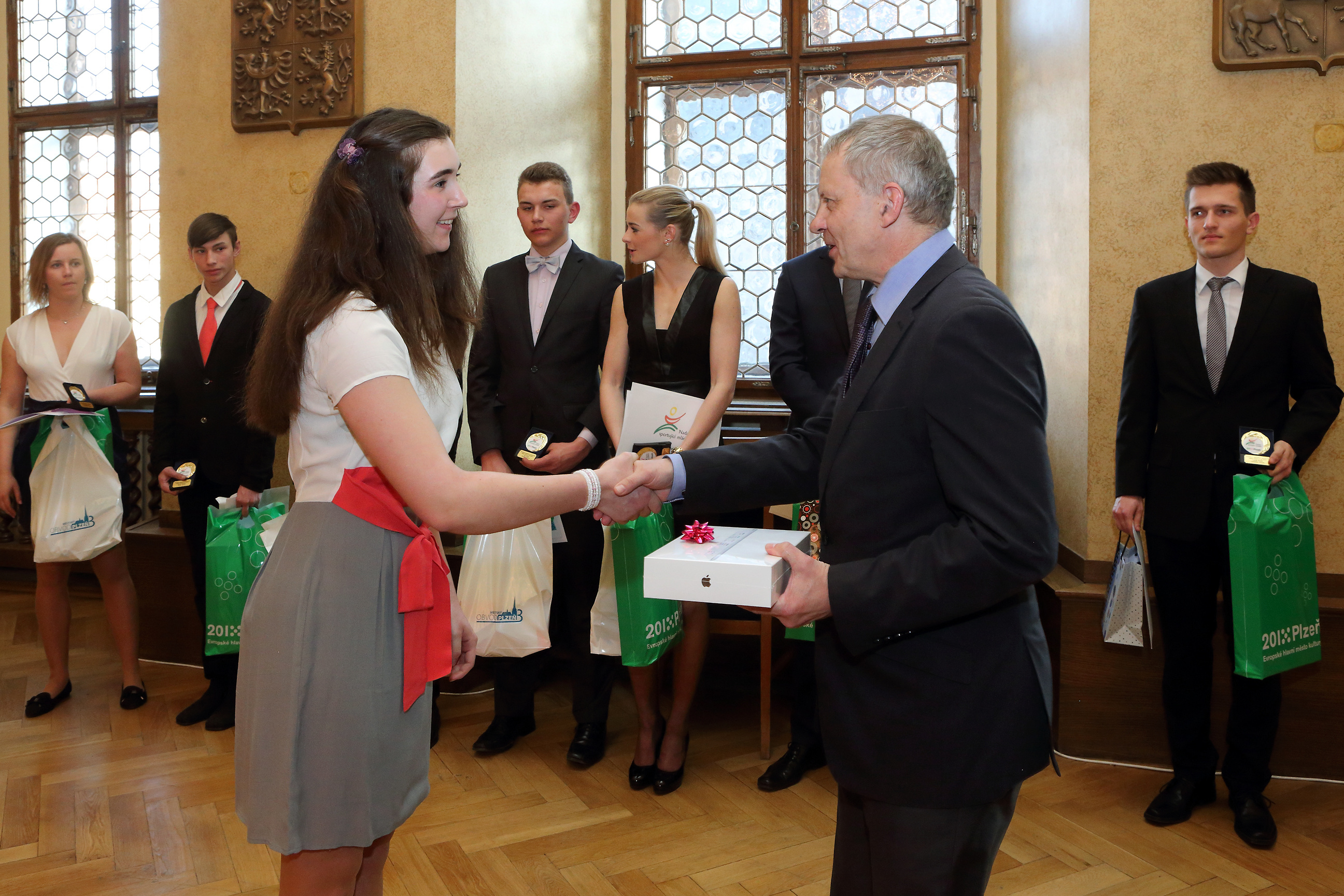 Již potřetí byla udělena Cena rektora Západočeské univerzity v Plzni, kterou z rukou Miroslava Holečka převzala Marie Horáčková, studentka Gymnázia Plzeň na Mikulášském náměstí. Cena se uděluje za skloubení sportovních a studijních výsledků.