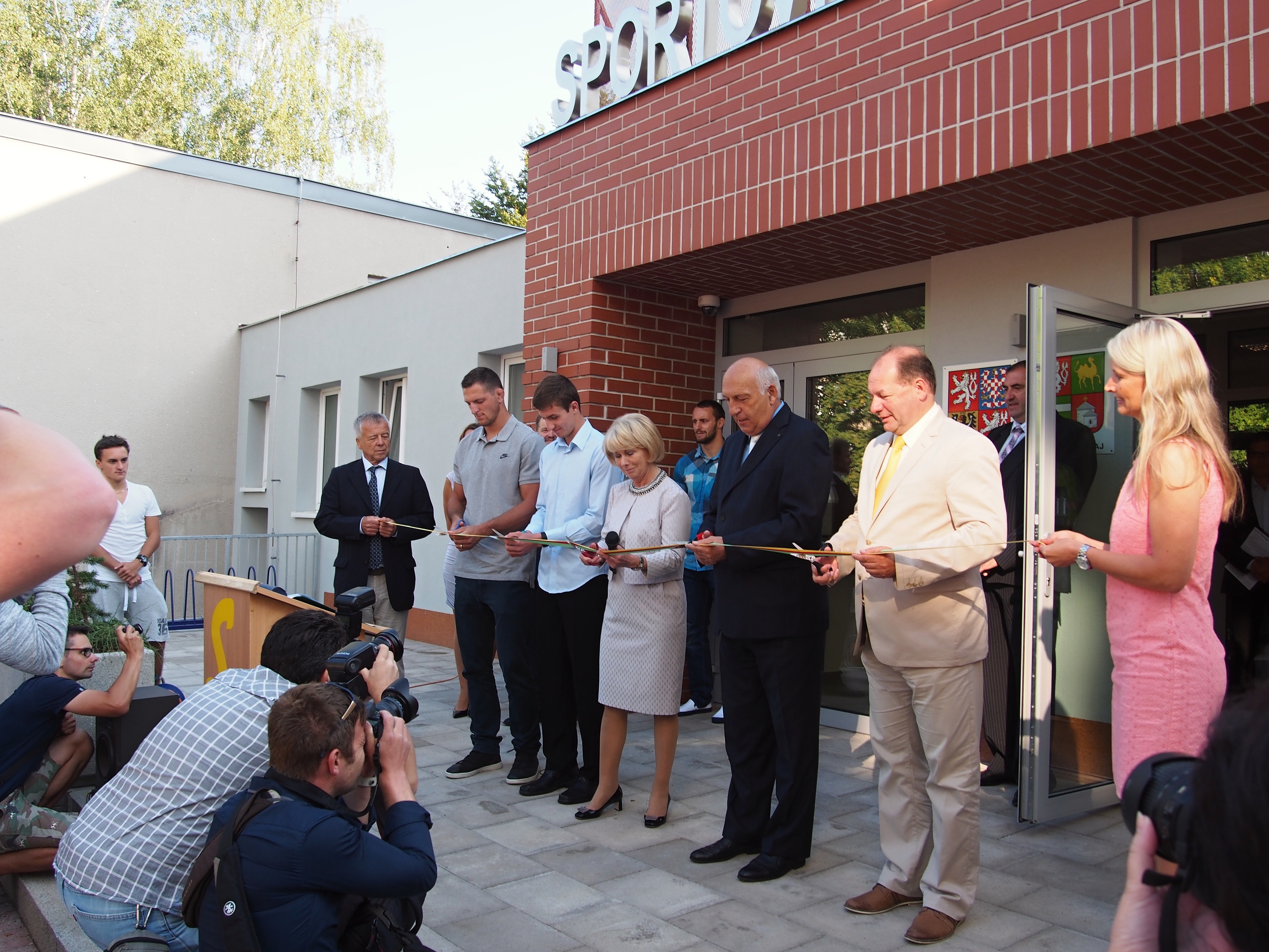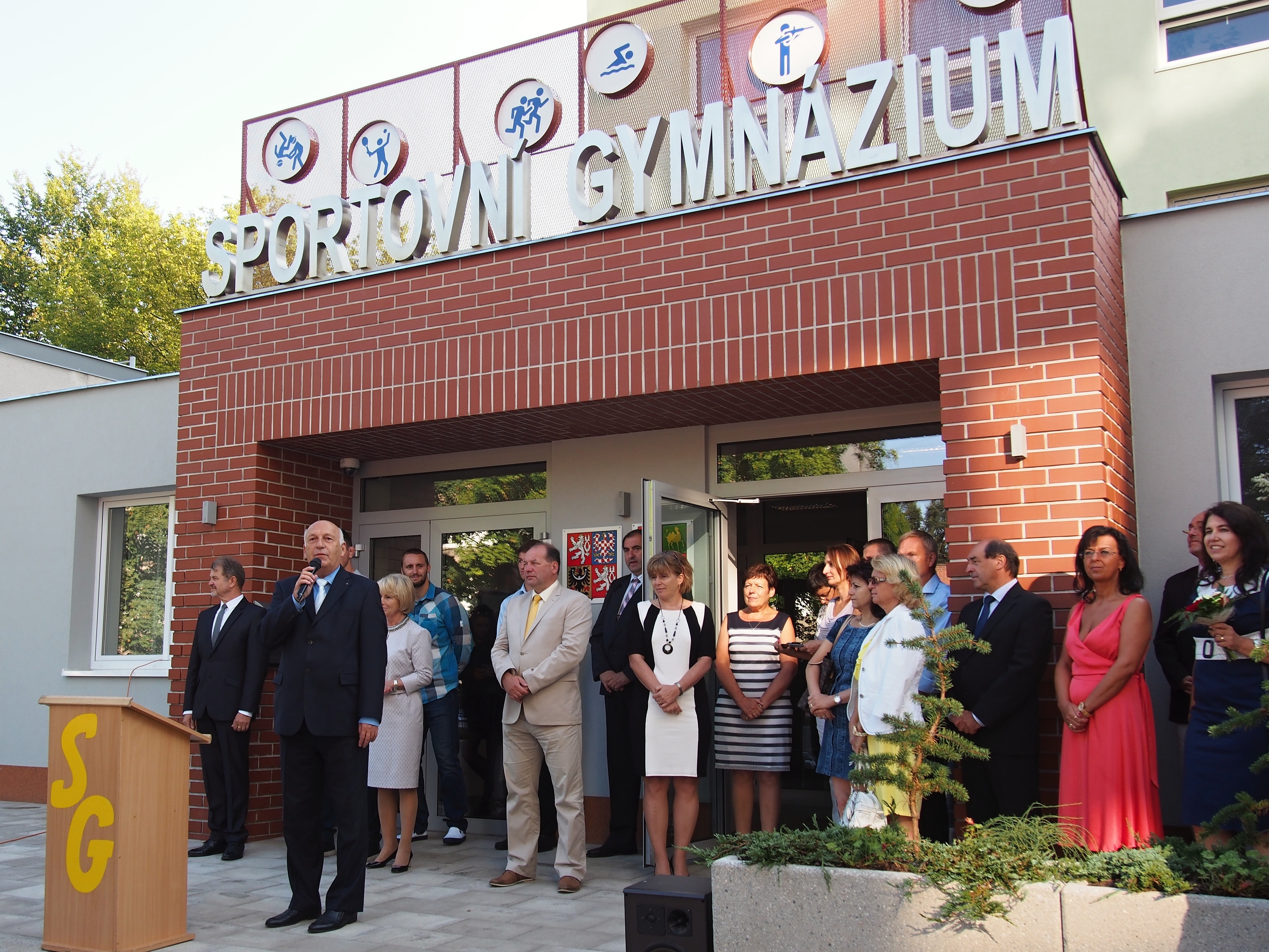 Slavnostního přestřižení pásky před budovou Sportovního gymnázia se 1. září 2016 ujal hejtman Václav Šlajs, náměstek hejtmana Jiří Struček, ředitelka školy Milena Majerová a olympijský vítěz z Ria Lukáš Krpálek. „Jsem rád, že při takové slavnostní příležitosti – otevření nové budovy gymnázia – je přítomen vzácný host, olympionik Lukáš Krpálek," řekl v úvodu hejtman. Slavnostnímu otevření školy přihlížely desítky studentů, kteří pokaždé při vyslovení jméno zlatého medailisty bouřlivě tleskali. Po přestřižení pásky byla připravena debata s Lukášem Krpálkem a také prohlídka budovy školy.