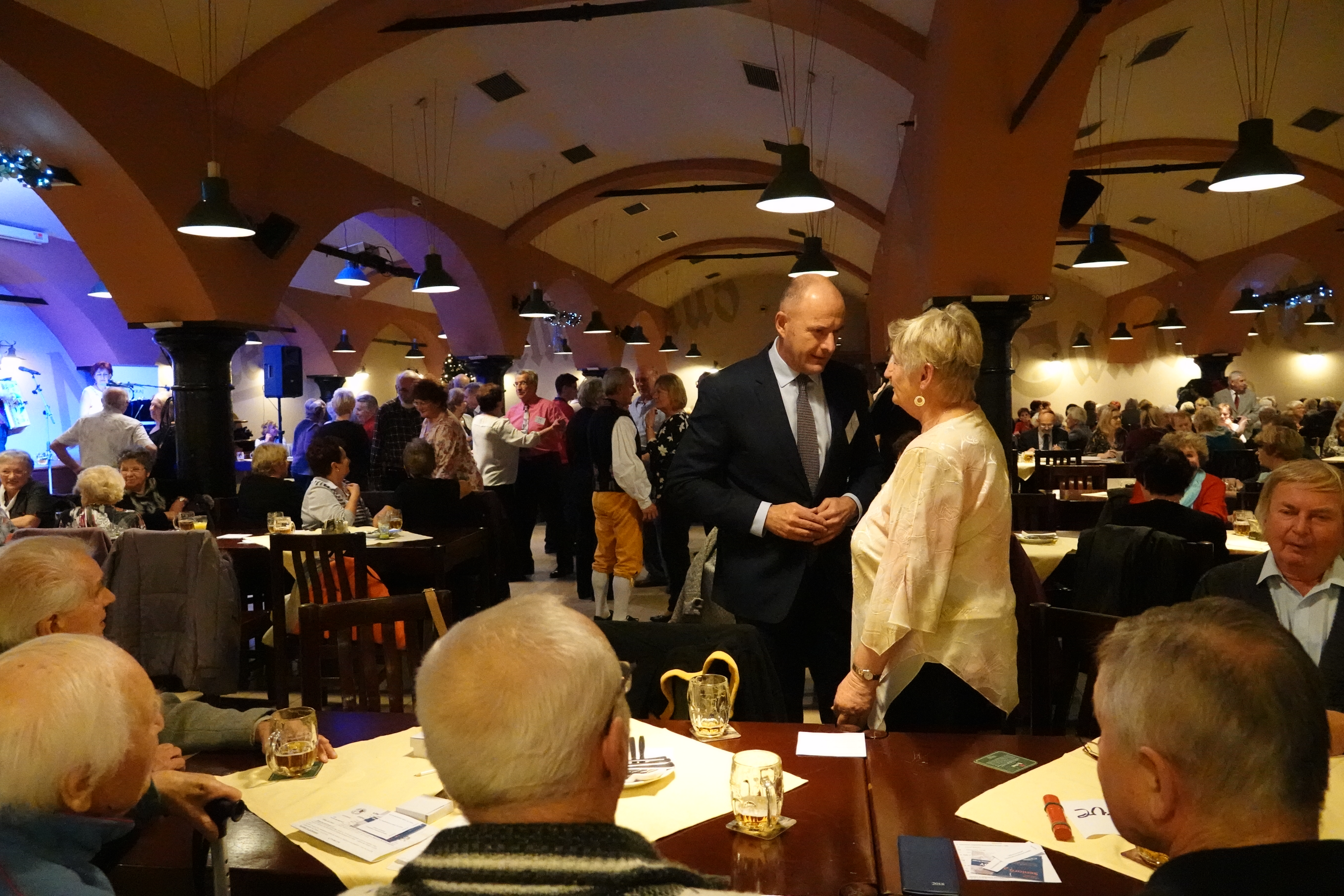 Už po deváté se sešli senioři s Radou Plzeňského kraje 23. listopadu 2018 14:45, aktualizováno 13:45, Mgr. René Zeithaml Téměř 400 seniorů se sešlo ve středu 21. listopadu 2018 na již tradičním setkání s Radou Plzeňského kraje v plzeňské restauraci Na Spilce. Setkání se vedle hejtmana Josefa Bernarda zúčastnila také jeho náměstkyně Marcela Krejsová, náměstci Pavel Čížek a Zdeněk Honz a radní Radka Trylčová. Nechyběla ani Milada Emmerová, která coby hejtmanka tato setkání založila. I tentokrát kromě výborné svíčkové a piva čekala na seniory skvělá zábava. Všichni si užili soutěž tanečních párů a již tradiční kvíz. O hudební doprovod se tentokrát postarala hudební skupina Asfalt Zdeňka Květoně. Účastníci dostali od Plzeňského kraje krájecí prkénko, salám, nůž a cestovní "šitíčko". Hejtman zase dostal od zástupců Městské Rady seniorů v Domažlicích tradiční chodské koláče. Fotogalerie: