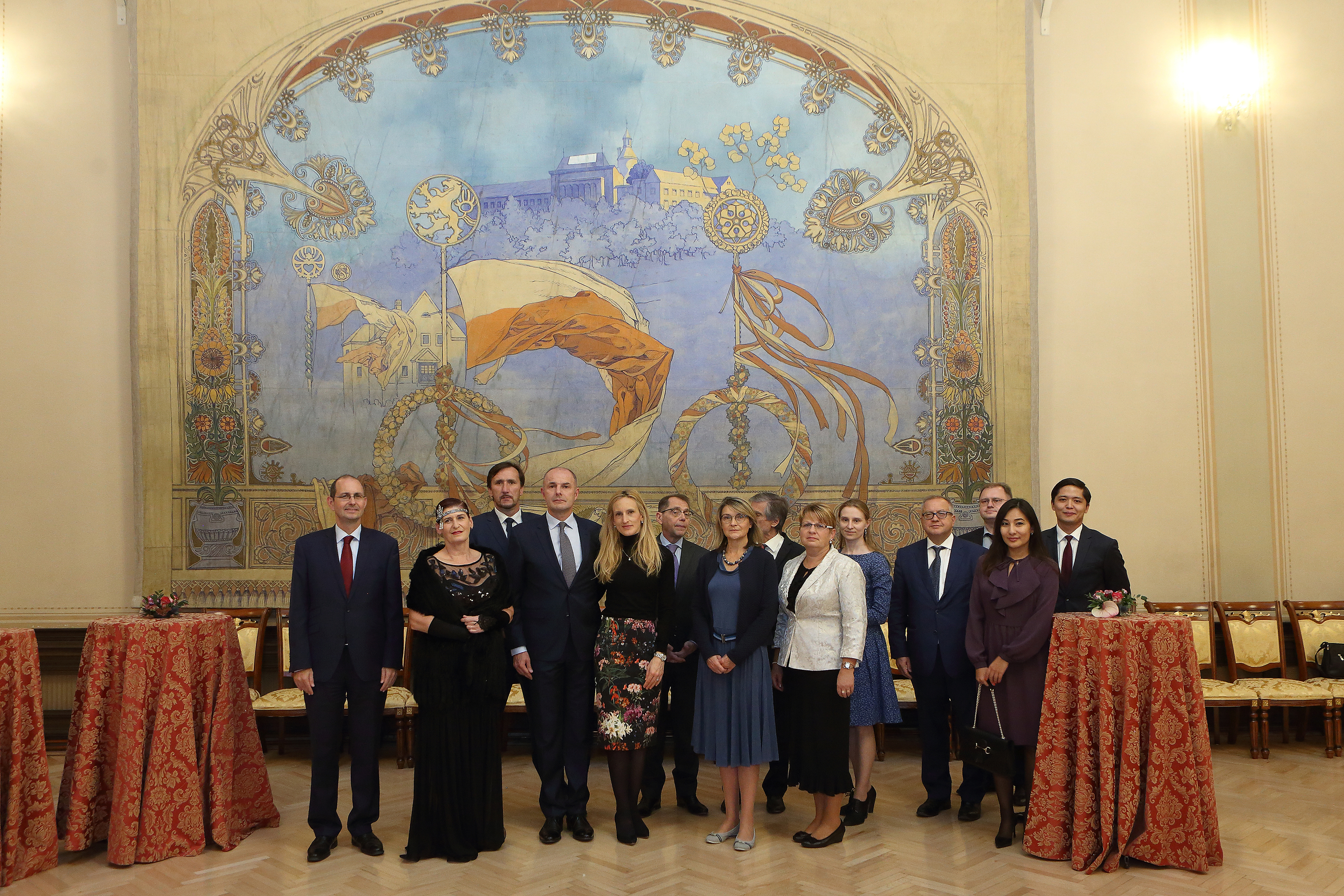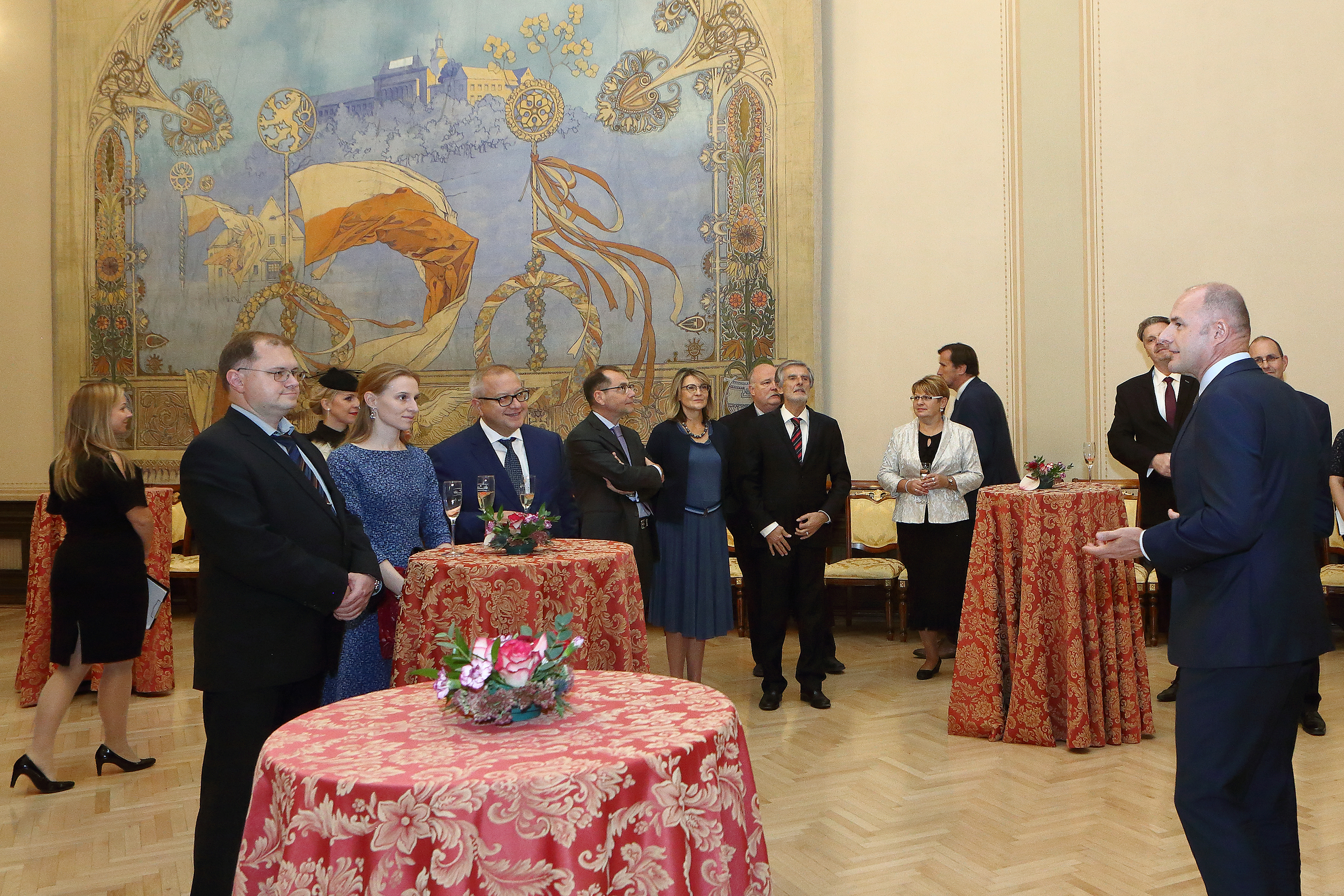 Večer pak patřil setkání členů Rady Plzeňského kraje s velvyslanci zemí, se kterými má kraj partnerství. V Muchově sále zámku Zbiroh se tak setkali hejtman Josef Bernard, náměstkyně Marcela Krejsová, náměstek Ivo Grüner a radní Milena Stárková s velvyslanci z Francie, Chorvatska, Německa, Slovenska, Ruska a Kazachstánu. Hejtman ve své řeči připomenul historii českého státu a zdůraznil význam partnerství, které náš kraj udržuje. V rámci společného setkání se uskutečnila také prohlídka zámku vedená jeho majitelem.
