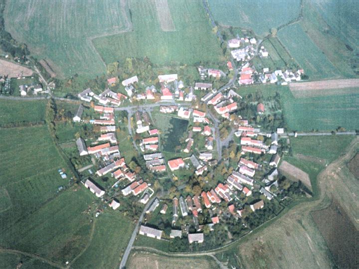 Půdorys vsi tvoří vzácný dochovaný typ okrouhlice s velkou téměř kruhovou ústřední návsí, kolem níž stojí radiálně ve štítové orientaci jednotlivé usedlosti. Uprostřed návsi je rybník a kolem několik stavení, která na první pohled zakrývají celkovou dispozici obce a byla zřejmě do prostoru návsi vestavěna dodatečně. Návesní fronta je tvořena velkými štítově orientovanými statky, většinou v mladší úpravě z konce 19. až 1. poloviny 20.století, které si však zpravidla zachovaly tradiční hmoty a vjezdové brány. Dochováno je několik starších klasicistních domů, zčásti dosud roubených, a to i v drobnější zástavbě uprostřed návsi. Působivé jsou i dálkové pohledy s výraznými liniemi stodol, uzavírajících jednotlivé dvory. Vesnice byla pro své památkové hodnoty vyhlášena vesnickou památkovou zónou.