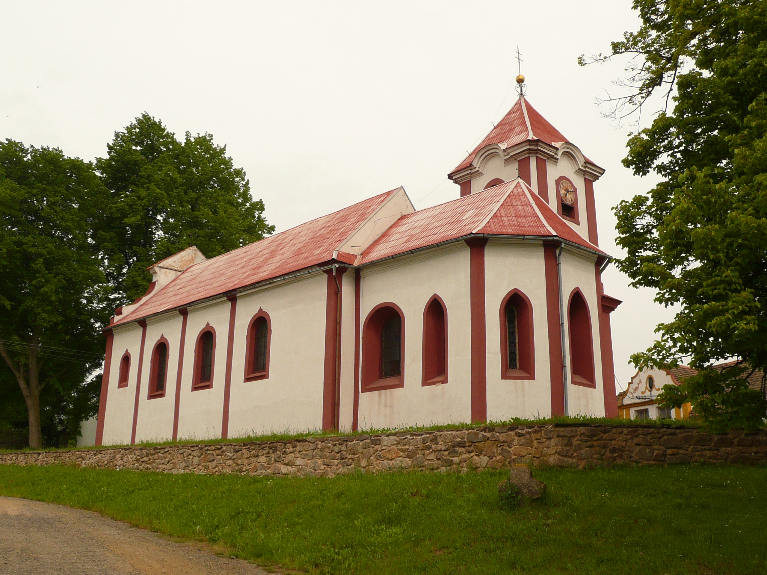 O osadě máme první zmínky z roku 1115. Existence kostela doložena písemnými prameny ve 2. polovině 14. století. Asi někdy v 1. polovině 14. století byl postaven presbytář, u něhož překvapuje velká tloušťka stěn (kolem 1,5 m); soudobá se zdivem klenba, okna a nejspíše také sanktuář. Středověká jsou pravděpodobně i přilehlé úseky podélných stěn lodi. Zásadní přestavba, při níž kostel získal současnou podobu, proběhla v letech 1753-6 (údaj převzatý z literatury). Loď byla tedy nejspíše prodloužena a zaklenuta; předělána okna, postavena kruchta a štíty a upravený vítězný oblouk. V presbytáři zřízeno na jižní straně nové okno. Krov lodi a presbytáře lze považovat za barokní. Patrně společně s výše popsanými úpravami vystavěna od základů (?) věž (podle některých zdrojů měla být postavena už v roce 1723). Klenba, stropy, vstupy, okna, členění fasád a zvonová stolice patří k době výstavby. Stávající krov věže náleží rámcově do 19. století, kdy nahradil nejspíše cibulovou báň, či jinou složitěji tvarovanou střechu.