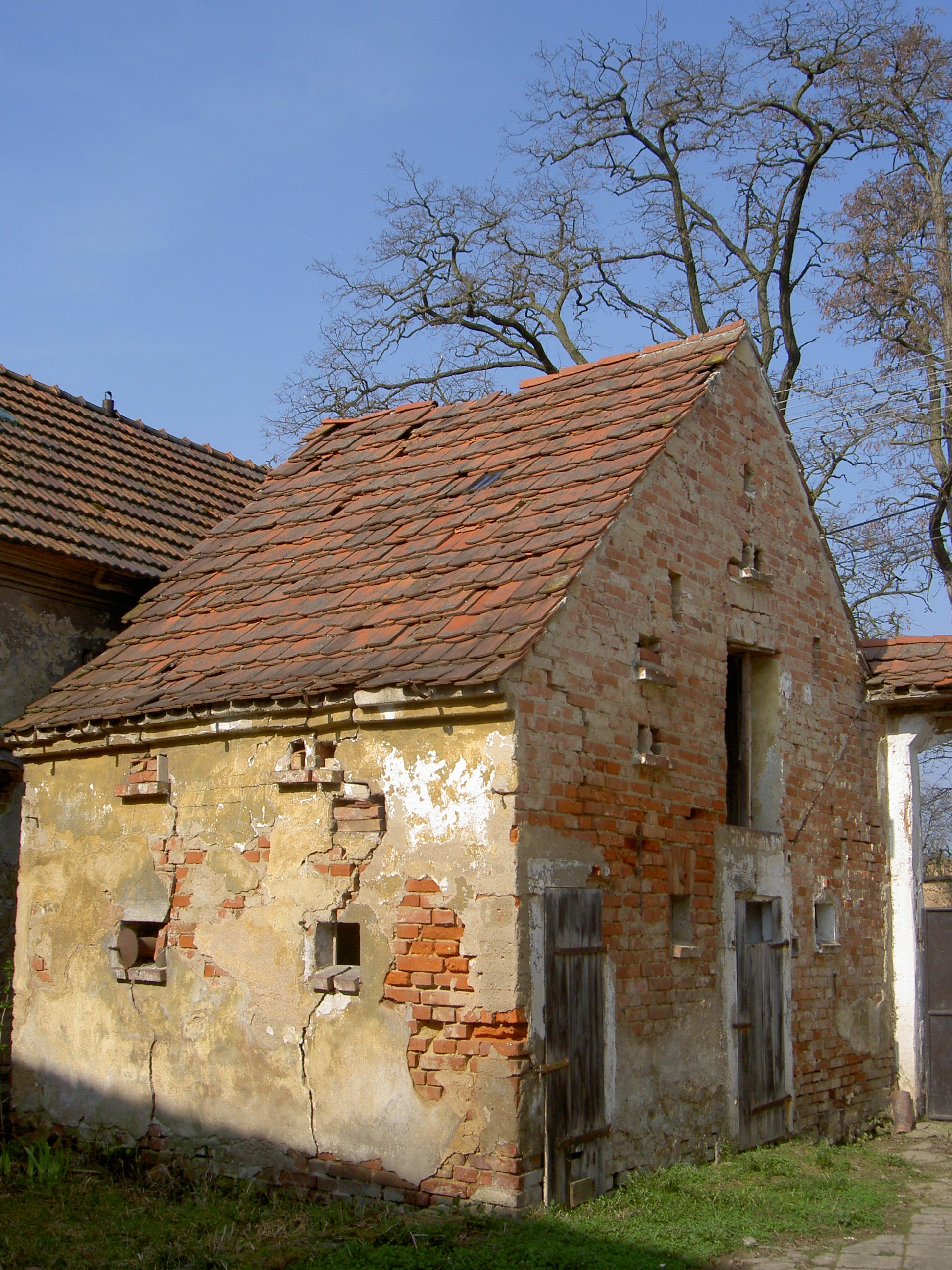 Hospodářská usedlost při výpadu silnice na Horni Sekyřany. Obytné stavení přízemí s polopatrem obráceno do průčelí dvěma osami s trojúhelným štítem a letopočtem 1929. D o dvora vede segmentem zaklenutá brána. Konec 19. stol. a pozdější úpravy. Patrový zděný s branou.