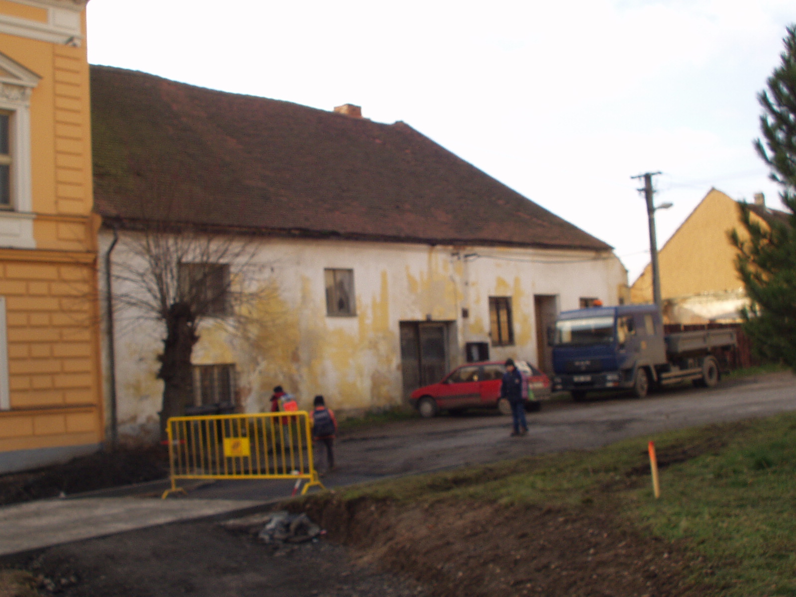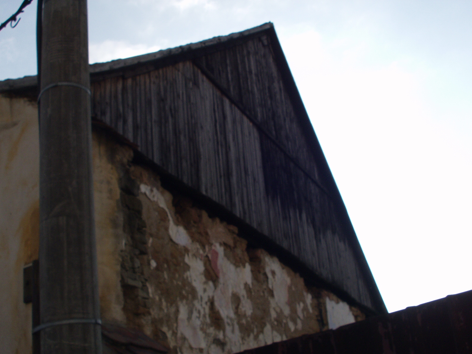 Levá polovina budovy je patrová pravá s průjezdem přízemním. Průjezd má trámový strop. V celku nedotčena gotická dispozice.