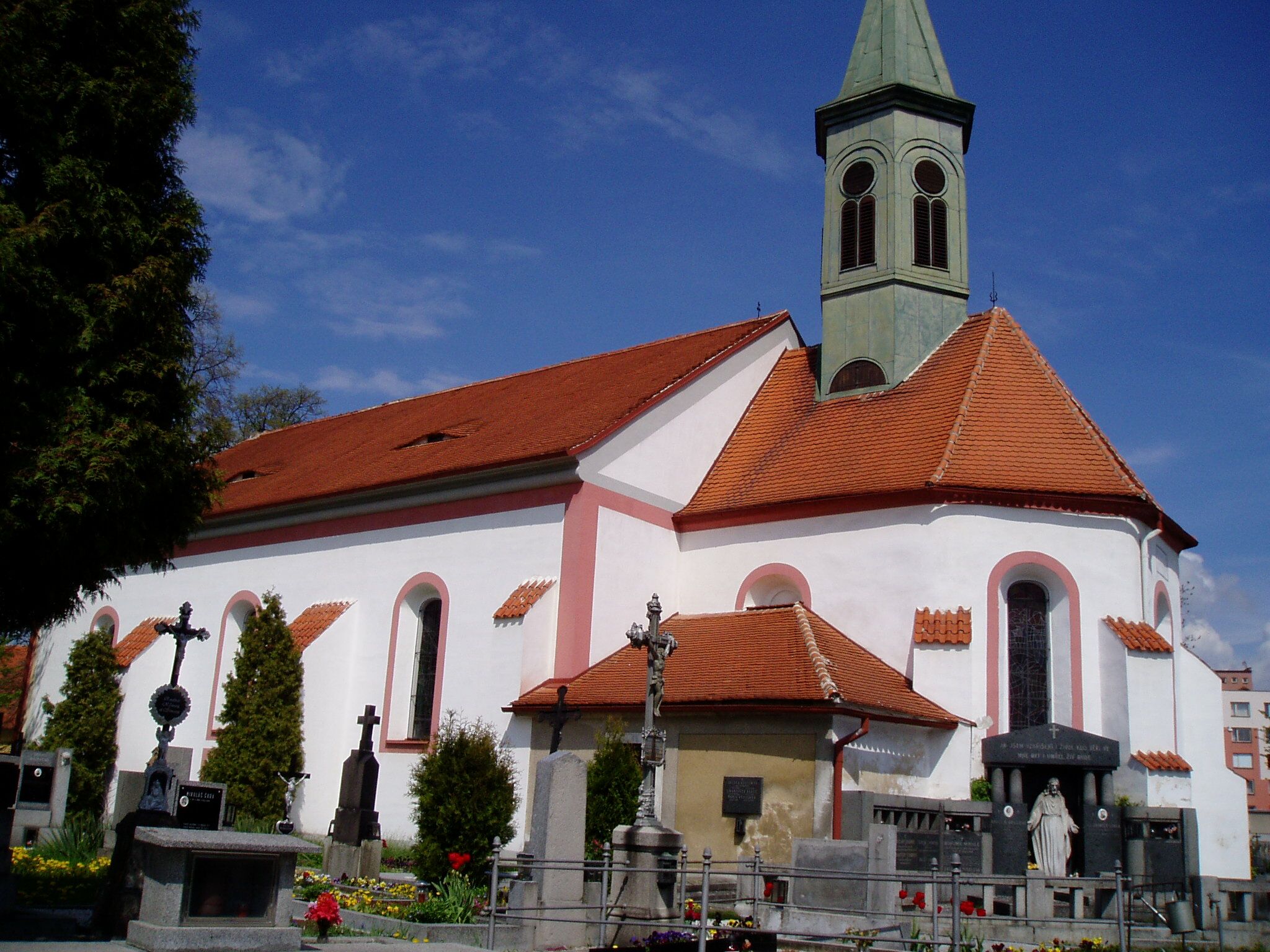 Trojlodí s krátkým, trojboce uzavřeným kněžištěm. Stěny opírají mohutné opěráky. Okna zaklenuta polokruhem. Vstup umístěn na pravé boční straně. Pod dnešní omítkou se objevuje červené pásování. Štuková, zcela plochá žebra interieru kněžiště jsou podchycena maskarony. Doplněno štukovou výzdobou. Portál do sakristie datován r. 1693, jeho vyřezávané dveře r. 1731. Sakristie zaklenuta křížově. Trojlodí sklenuto křížovými klenbami s hřebínky na hranách. Západní stranu chrámu zaujímá dřevěná, bohatě zdobená raně barokní kruchta. Renesanční kostel z konce 16. století. Úpravy roku 1693.