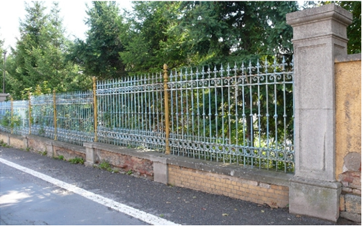 5) oplocení s branami a brankami - Areál bývalé tabákové továrny je z východní strany vymezen původním oplocením s dvojicí vjezdových bran a samostatnou brankou. Při východních nárožích areálu se ohradní zeď na severní i jižní straně kolmo zalamuje k západu a pokračuje v délce cca 50 metrů. Dále k západu navazující plná cihelná zeď již není předmětem památkové ochrany. Pozdní historismus.