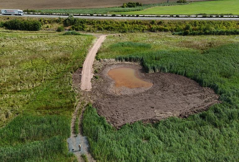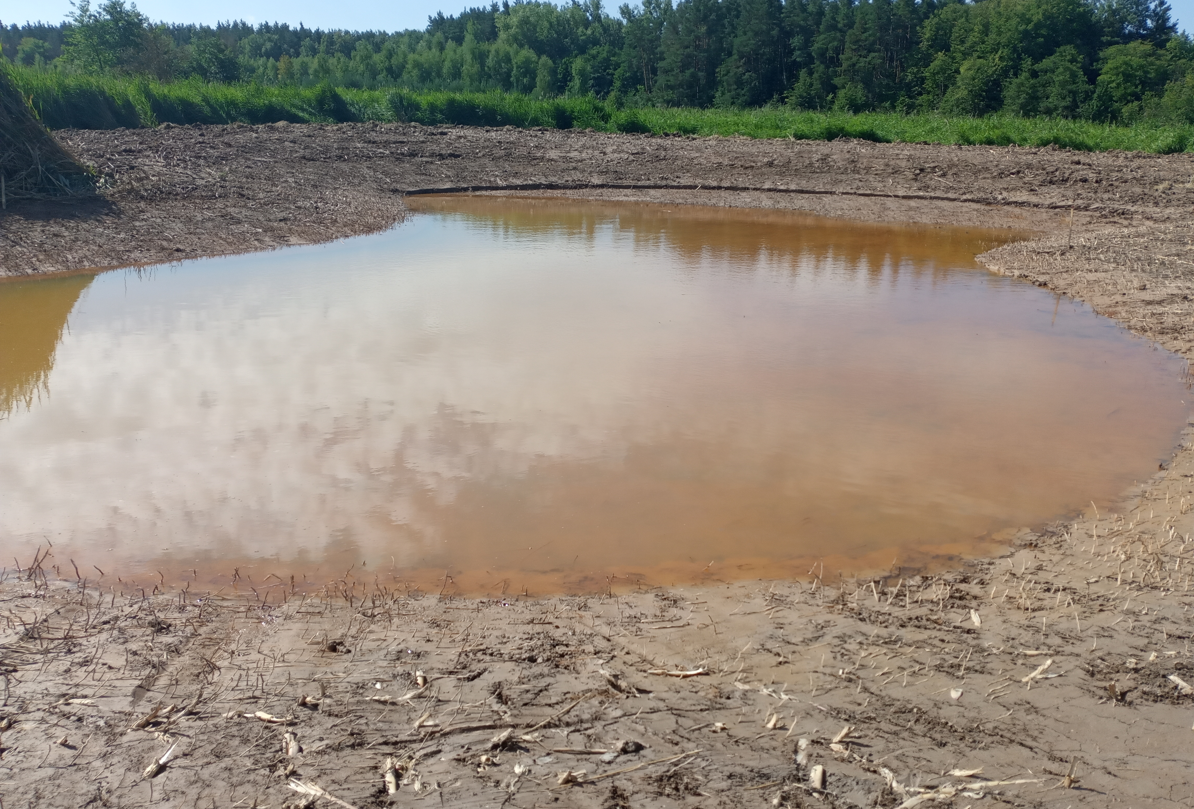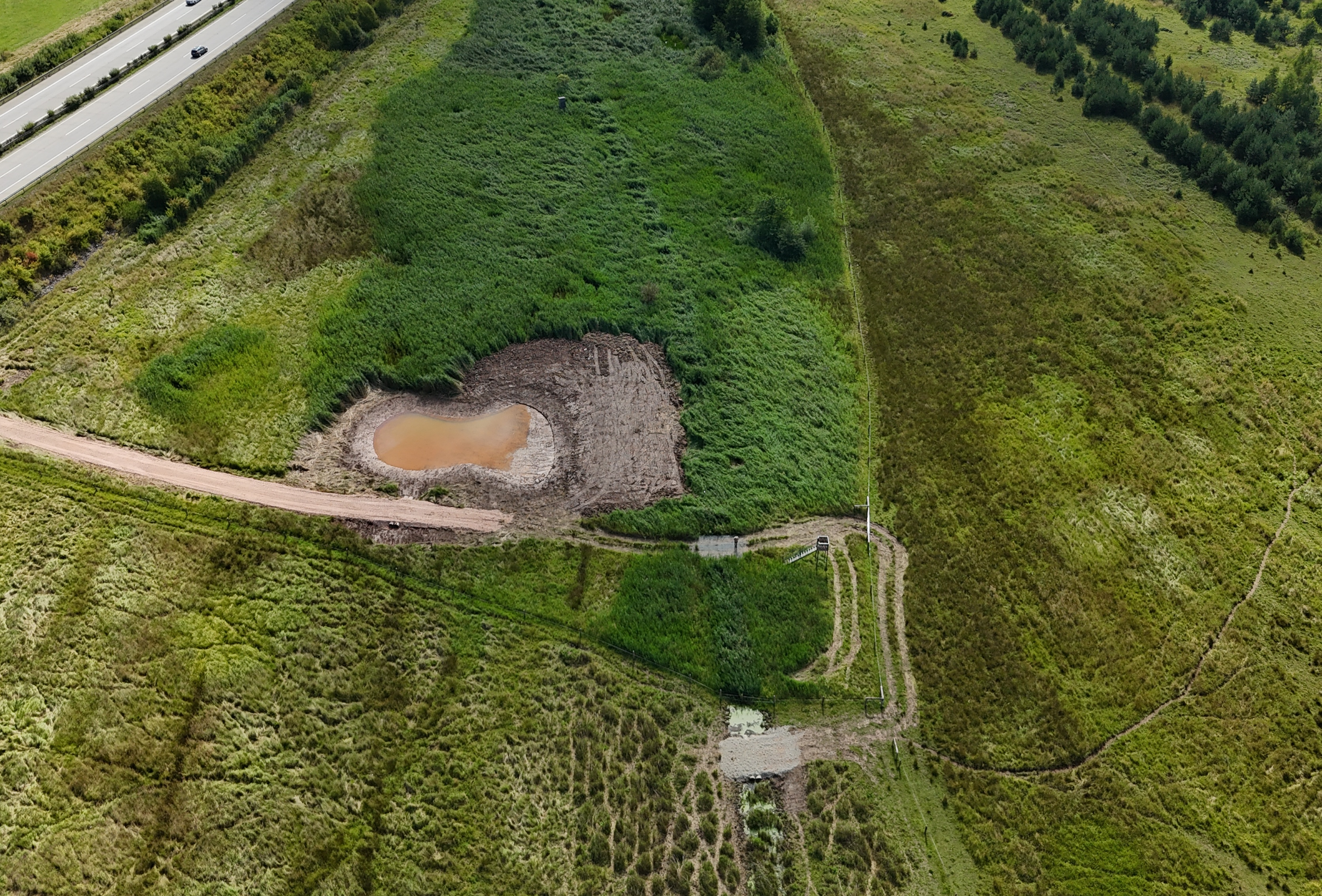 Nově vyhloubená mělká tůň odvádí vodu z podloží a zároveň vytváří jedinou osluněnou vodní plochu v této části rezervace. Už krátce po dokončení se naplnila vodou a začal se zde rozvíjet život světlomilných rostlin, bezobratlých a obojživelníků. Postupně se očekává i návrat vodních ptáků, kteří v oblasti hnízdili v minulosti.
