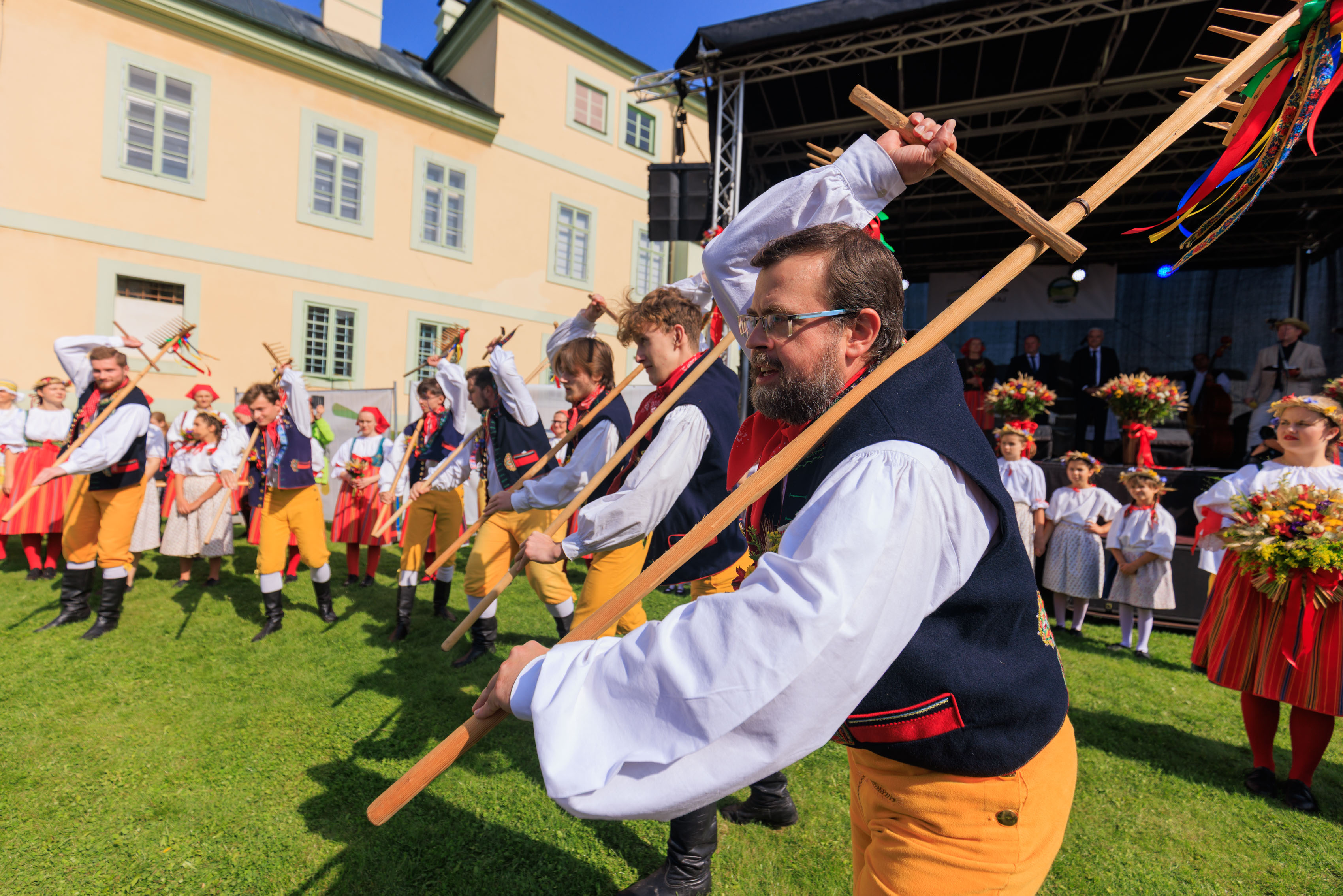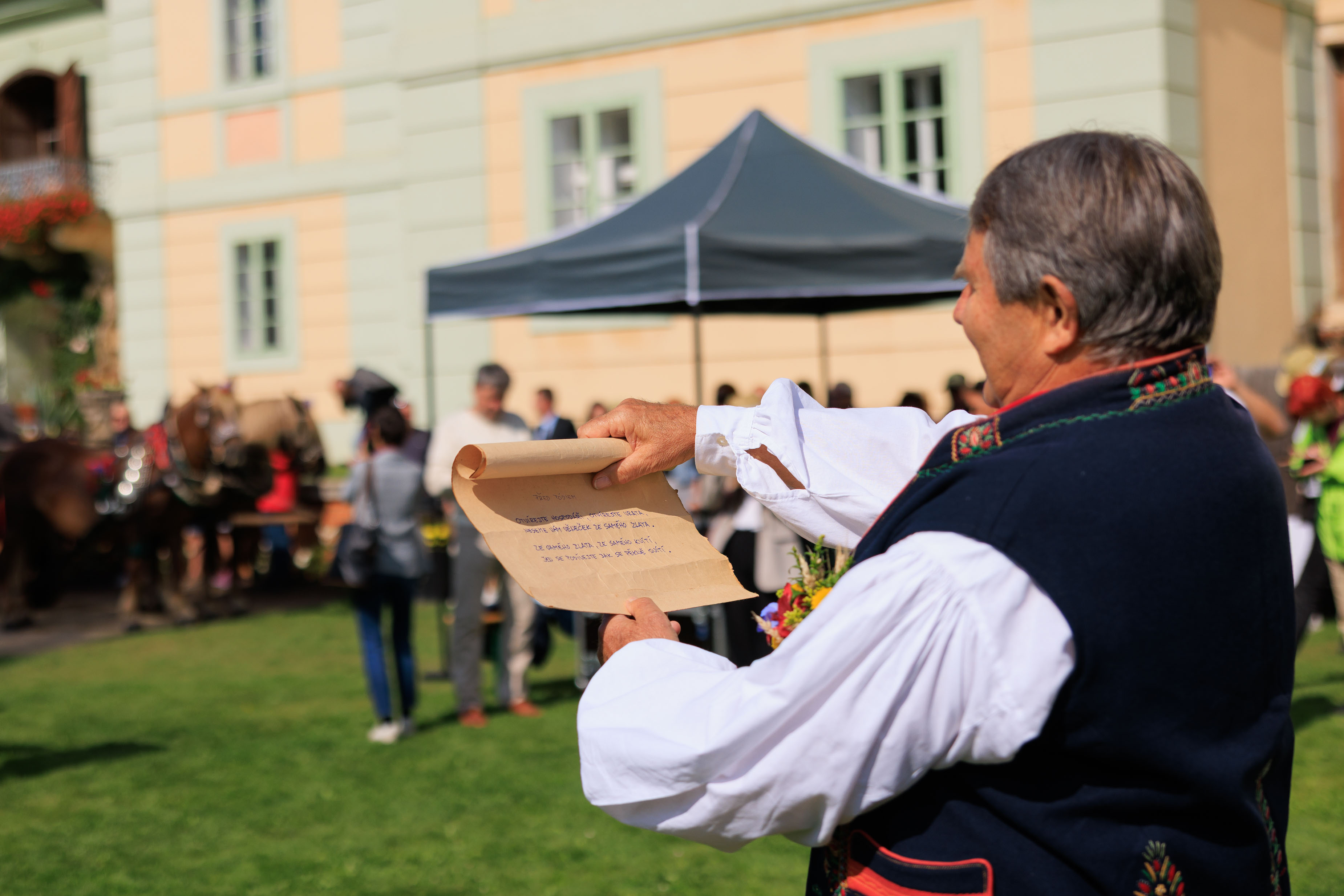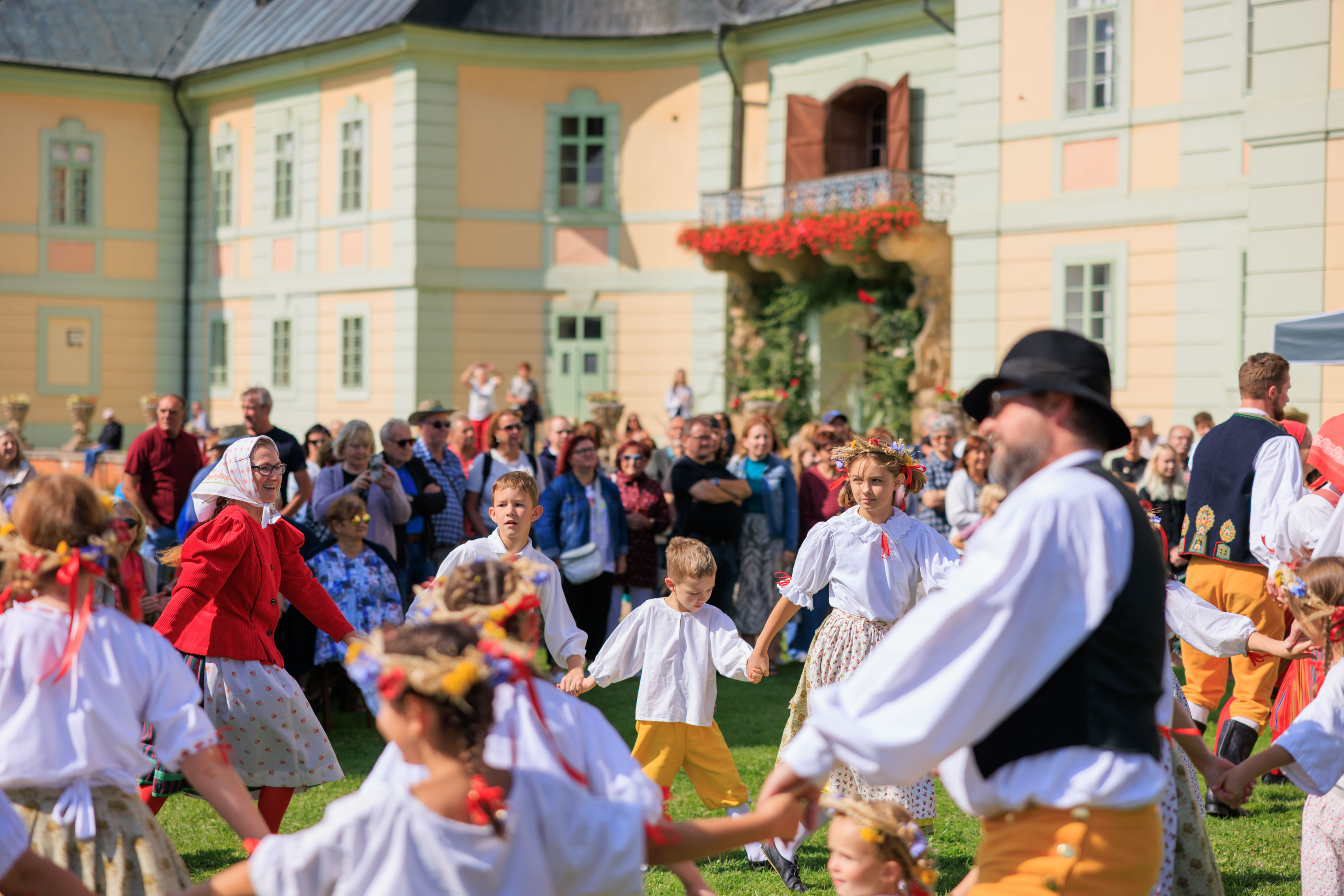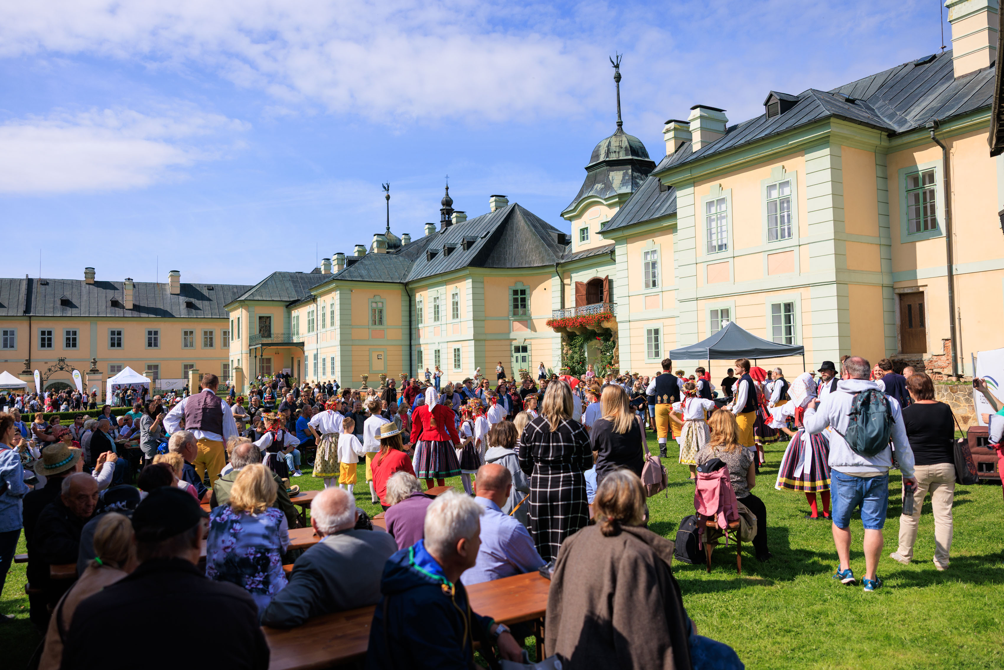 Součástí programu byla také tradiční dožínková veselice – zámeckým parkem prošel průvod za doprovodu folklórního souboru, hejtman převzal dožínkový věnec a poté symbolicky pozval chasu na pivo.