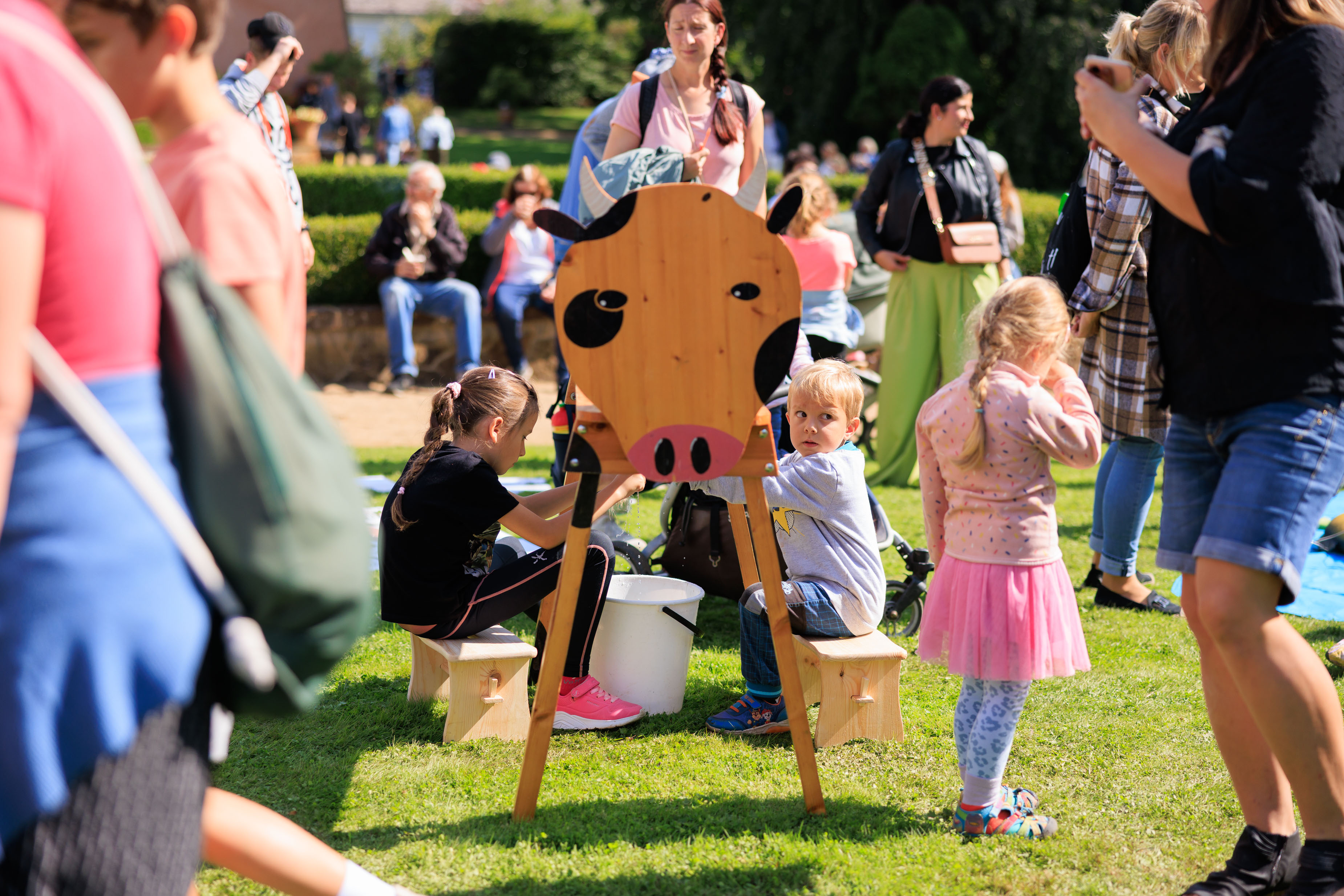 Rodiny s dětmi čekaly dílny, jízda na koních, malování na obličej i ukázky zemědělské techniky. O zábavu se postaral klaun Bailo a k vidění byla i práce mistrů tradičních řemesel. A v areálu byla nepřehlédnutelná i tisícovka slamáků, které kraj věnoval návštěvníkům jako dárek k letošnímu výročí 25 let Plzeňského kraje.