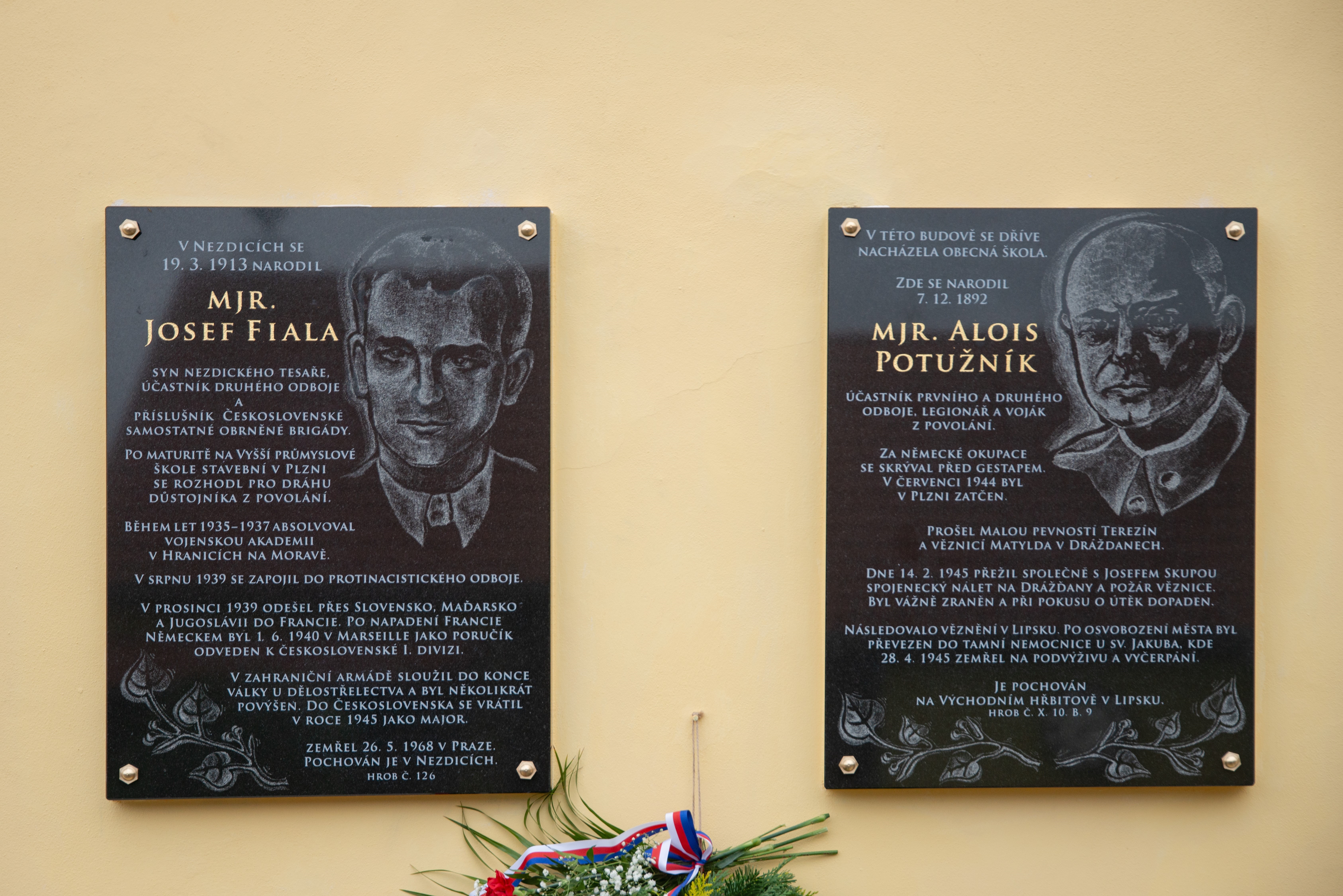 U příležitosti Státního svátku dne 28. října 2025, byly v malebné obci Nezdice na Přešticku za účasti rodinných příslušníků, obce, ORP a kraje, slavnostně odhaleny pamětní desky majorům Aloisi Potužníkovi a Josefu Fialovi. Vydařeného slavnostního aktu se i přes nepřízeň počasí zúčastnilo množství místních obyvatel včetně rodinných příslušníků, z nichž část přijela ze zahraničí. Odhalené pamětní desky jsou vedeny v Centrální evidenci válečných hrobů Ministerstva obrany ČR.