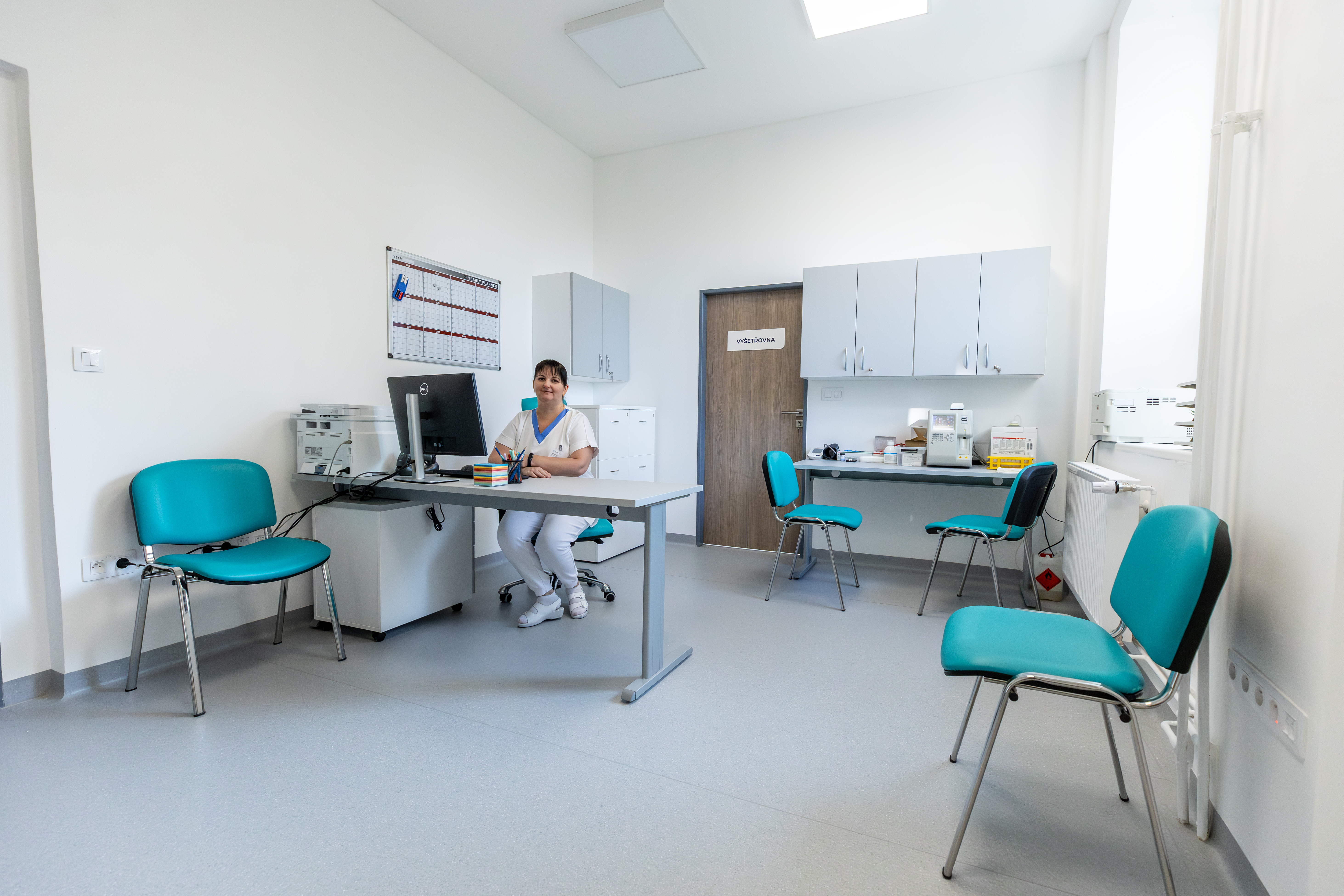 Odběrové centrum vzniklo v přízemí nemocnice, kde byly původně tělocvičny pro rehabilitaci. Ty se ale v uplynulých letech vybudovaly nové s moderním vybavením a zázemím částečně v horních patrech u lůžkových stanic a z větší části pak v suterénu, kde je hlavní část rehabilitačního oddělení včetně fyzikálních terapií, vodoléčby a rehabilitačního bazénu.