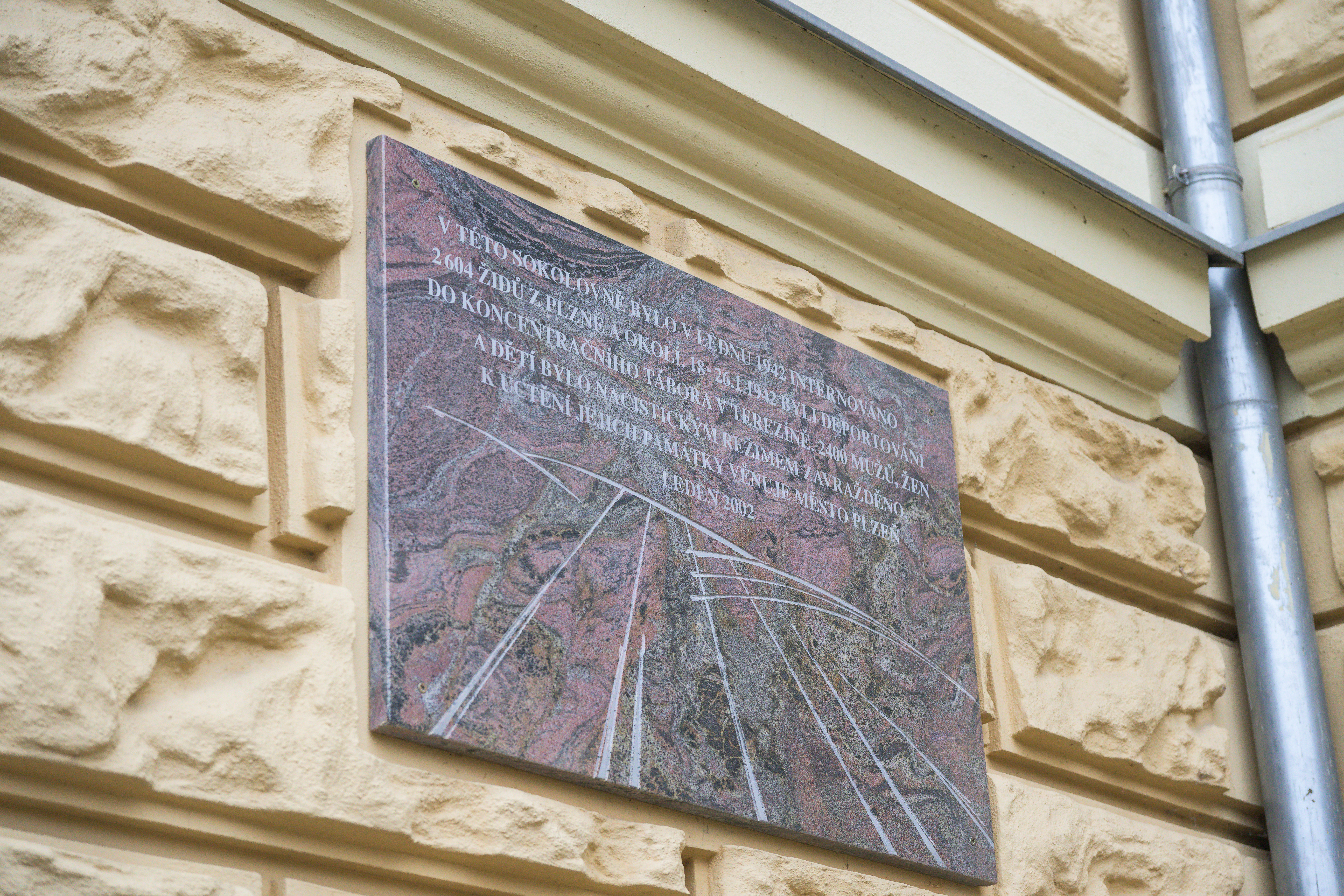 Ze sokolovny Židé v roce 1942 zamířili na vlakové nádraží, odkud pokračovali dále do koncentračních táborů. Z Plzně bylo ve dnech 18.–26. ledna transportováno více než 2 600 mužů, žen a dětí, jejichž počet dodnes připomíná pamětní deska na sokolovně. Konce války se dožilo jen 209 deportovaných.