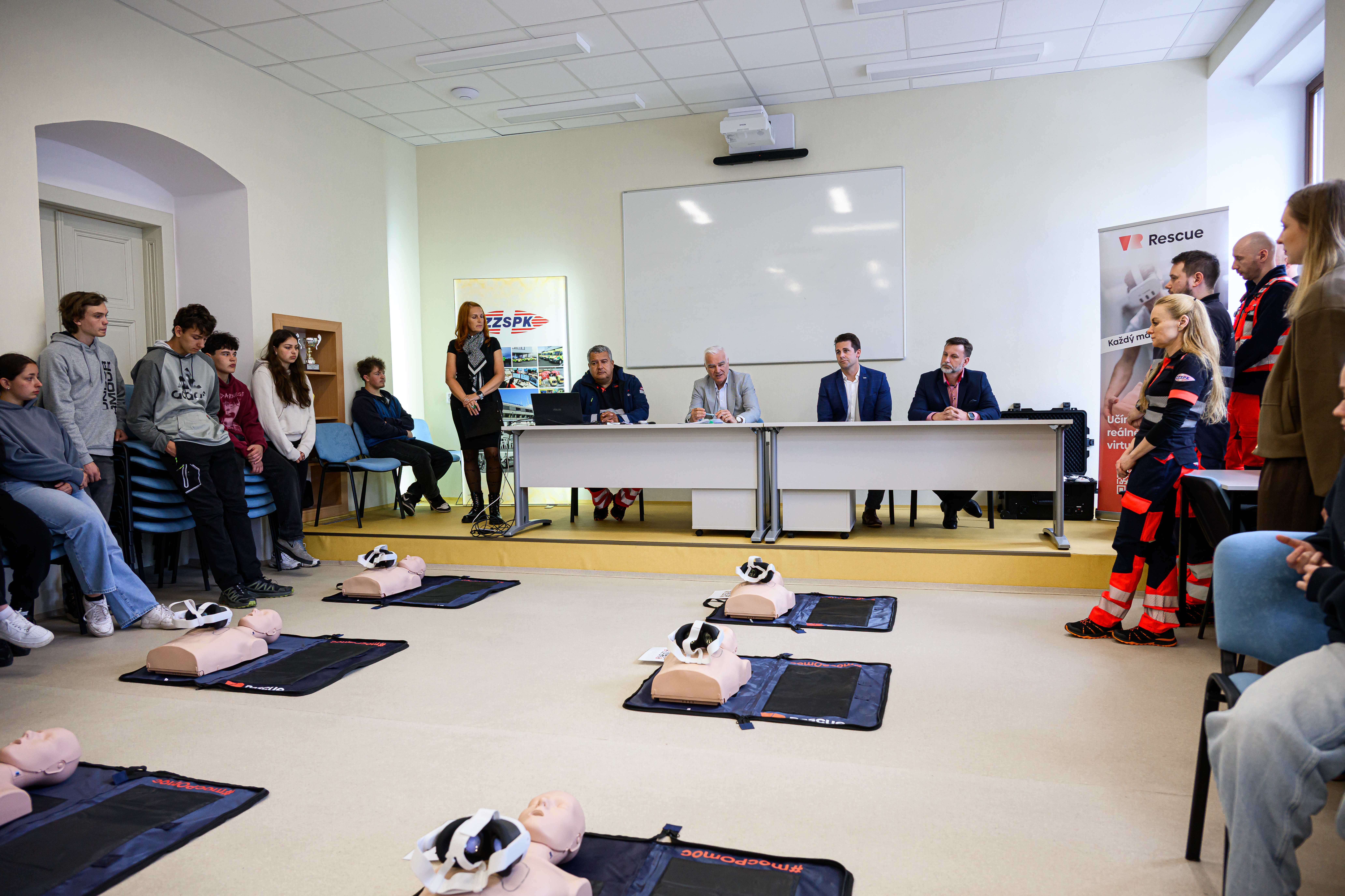 Jako první kraj v České republice zavádí Plzeňský kraj systematickou výuku první pomoci na svých středních školách prostřednictvím unikátního systému virtuální reality propojené s umělou inteligencí VR Rescue. Studenti si díky této moderní technologii vyzkouší záchranu lidského života v realistických situacích a získají tak dovednosti, které mohou často rozhodnout o přežití. O proškolení více než 29 tisíc žáků krajských škol se postará Zdravotnická záchranná služba Plzeňského kraje díky speciálním figurínám, které jsou propojené s virtuálními brýlemi.