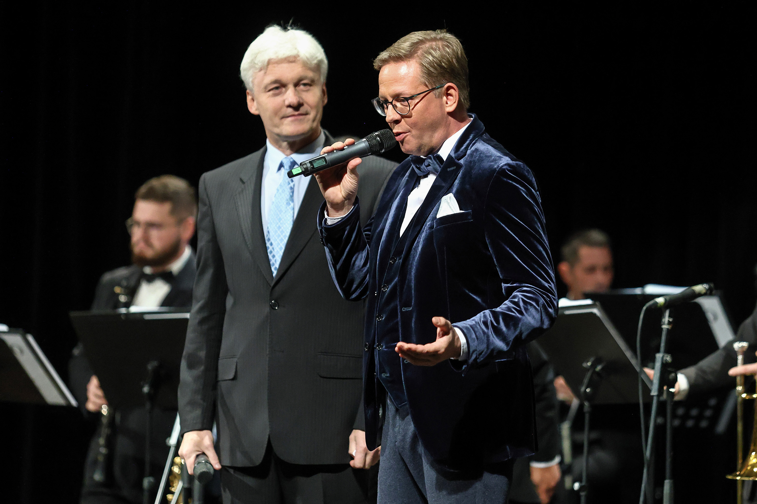 Koncertem provázel oblíbený moderátor Aleš Cibulka společně s konferenciérem orchestru Milanem Markem. Dvojice se postarala o dynamickou atmosféru. Cibulka se během večera podělil o osobní vzpomínky na známé zpěváky a textaře.