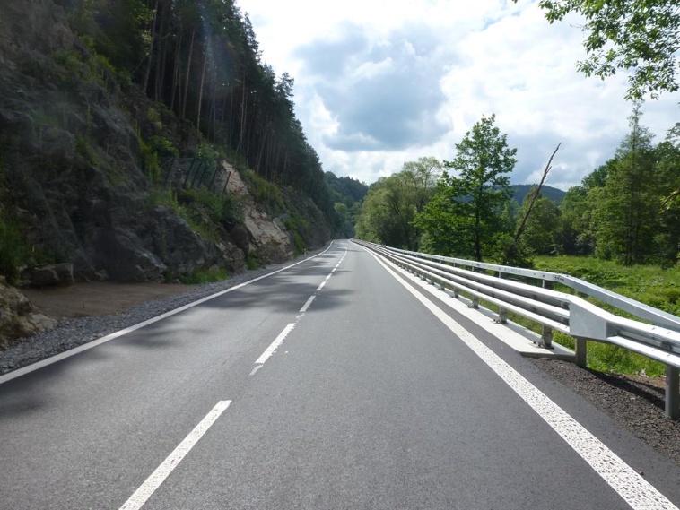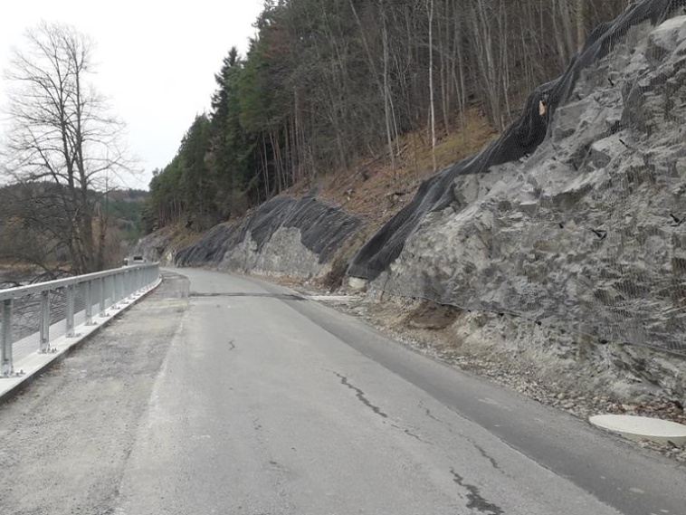 V rámci oprav bylo nutné vykácet vzrostlé stromy, očistit skalní plochy od nánosů a náletových dřevin, odtěžení nestabilních hornin skalního masivu strojní a horolezeckou technikou, provést kompletní stabilizaci okrajů vozovky a nezpevněné krajnice gabionovými konstrukcemi, postavit dva mostní objekty, založit propustky a vybudovat odvodnění komunikace, rekonstruovat nábřežní zeď a částečně zasíťovat skalní masiv a část záchytných plotů.